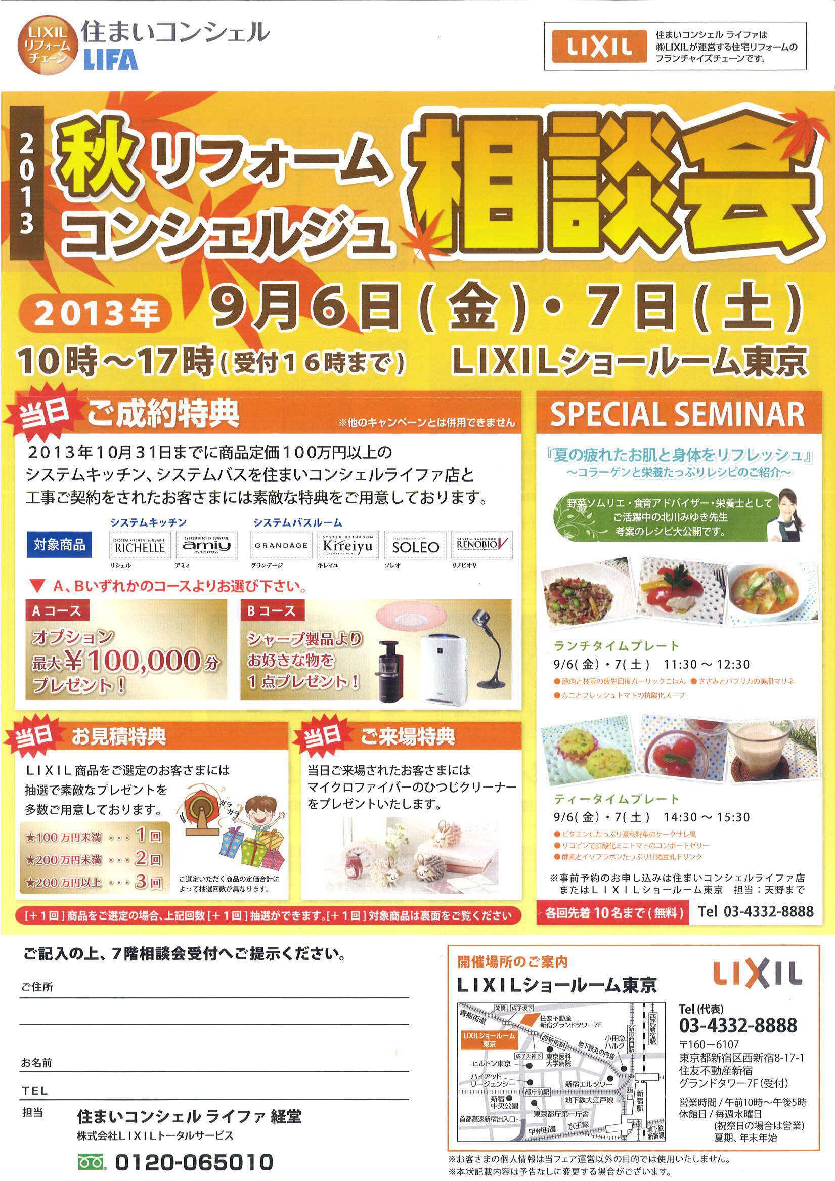 場所は今回もLIXILショールーム東京、10時~17時(受付16時まで)となっています。
