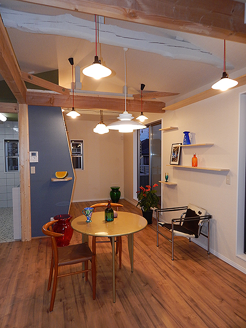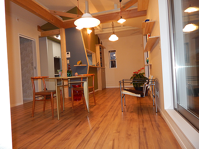 今回の工事に当っては既存建物の1階にあったLDKを2階に持っていくというご提案を受け入れてくださった所からスタートしました。 基礎や構造補強を行いながら、いかに住みやすい、そして愛着の持てる家にするかに心慮しました。2階に3室あった昔の建売住宅風の部屋を取り払って広いLDKの部屋にして最大限のバルコニーを設置することが出来ました。 インテリアは木の暖かさを生かしたナチュラルデザインにしました。 今までと全く違う家に甦ったのでないかと思っています。