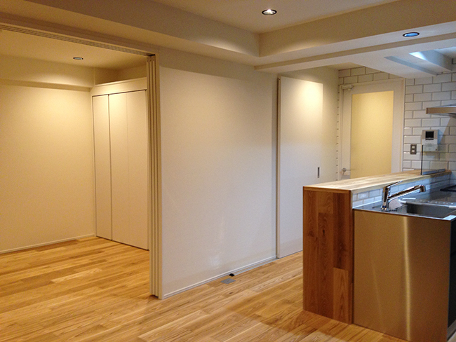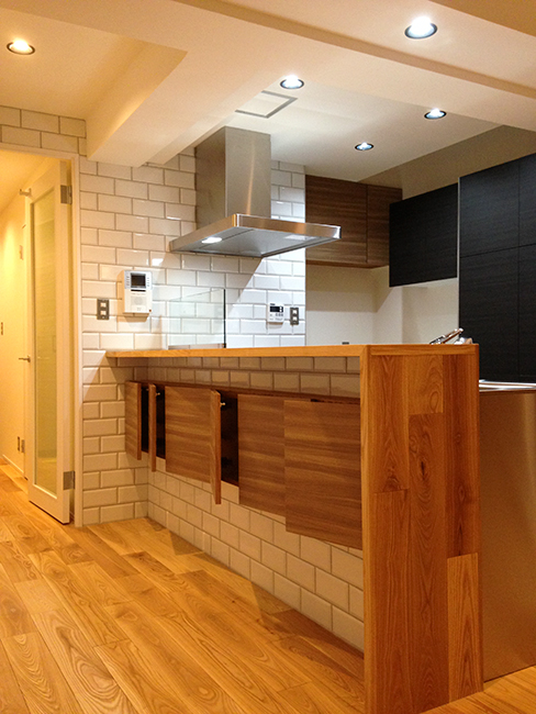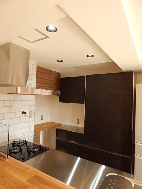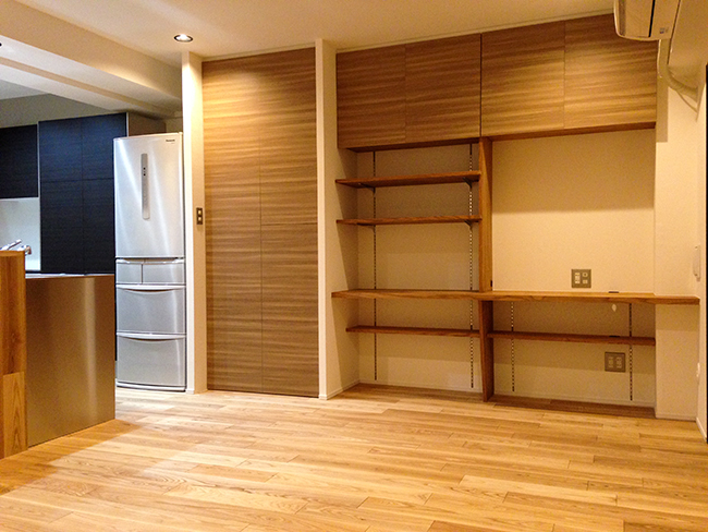 築20年のマンションにお住まいのK様。3年前に老朽化に伴う洗面室と浴室のリフォームを当社にて行い、今回はLDKの壁紙の張替えの依頼とトイレとキッチンの入替をしたいというご要望でした。当初は間取り変更等のリフォーム計画では無かったのですが、何度かご自宅へ伺う機会があり、キッチンの使い勝手や間取りに不便さがあるように感じました。もう少し間取りや収納をアレンジして機能的で明るく、温かみのある空間にされてみたら如何ですか?ということで、間取り変更を含めた別のプランをご提案させて頂きました。