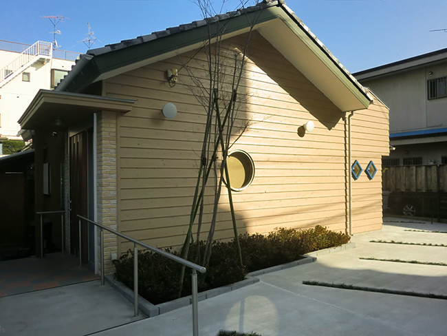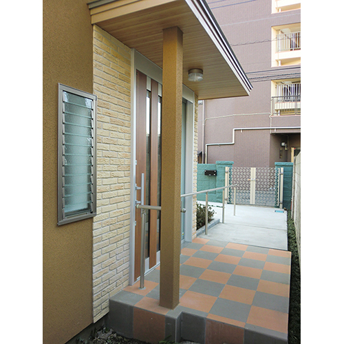 築60年の平屋は、お施主様が今は亡きご主人と共にはじめて建てた思い出のある家です。転んで怪我をされて、入院とリハビリを経験したお施主様が、安全に心地よく暮らせる家を提案しました。思い出が多い家では特に、全く新しくするよりは、新たな形で再利用したりしたほうが、幸せな気持ちでいられることもあると思います。今回は、バリアフリーと、耐震、断熱、採光の工夫を盛り込み安全で快適な住まいを目指しました。介護のための車の乗り降りや、玄関までの安全を考慮して、道路側の建物を減築して、駐車スペースとスロープも作りました。