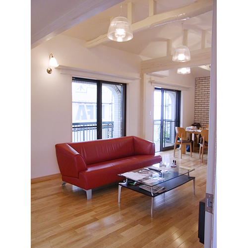 築36年の在来木造2階建住宅のリフォームにあたり、新築建替えのご要望もありましたが、建物面積が現状より少なくなるということで、リフォームということになりました。基礎補強から行い、柱と土台と梁等、骨組みだけ残して正にスケルトンリフォームで行いました。ご夫婦お2人だけの住まい、そして仕事をされていましたし、庭を利用されるということも余りないという事で、思い切ってLDKを2階へ持っていくというご提案をさせて頂きました。