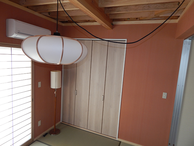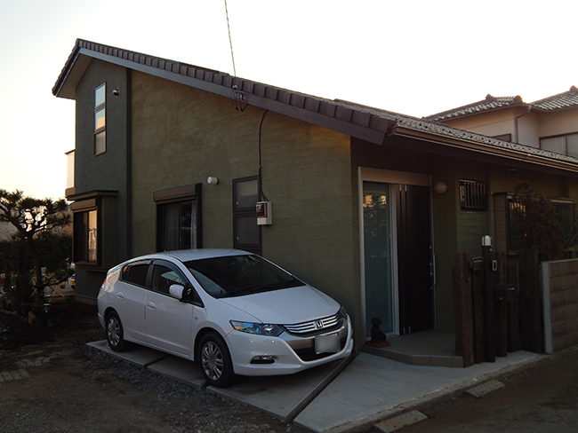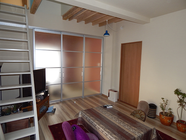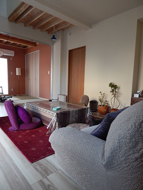 定年退職されたご主人と、今まだ現役で働かれている奥様がこれからゆったりと過ごせる家にリフォームしたいというご要望から始まりました。 平屋建の屋根を追長して、吹抜けやロフトを作るというご提案が最終的に、せっかくだから洋室とロフトを作るということになりました。 穏やかなご夫婦との何回かのお打合せにより、シックでおしゃれな空間を基調として、ある程度個性的なアクセントも望まれているということが解り、木材や塗り壁等、経年劣化ににより味わいの出てくる素材を主力としながら、アクセントブルーや照明コードの赤が脇役としてピリリと主役を引き立てる家が出来上がりました。 正月訪れた遠方からの娘さんとお孫さんがとても気に入り、将来一緒に住みたいと言われたと喜んでおられた笑顔が見れてとても感動しました。