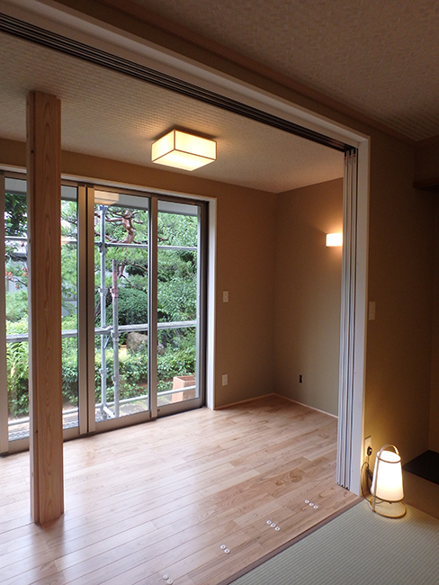 4世代に渡る家のリフォームでした。着工後は様々なアクシデントがありました。まずは築45年の平屋建ての上に2階をお神楽として増築してあったことや、スケルトンにしてみると10年前に近くの工務店に依頼したはずの耐震補強の筋違いが全く入っていなかったことが判明し、ご家族もびっくりされていました。又、元々平屋建だったので1階の柱が細かったり、古材の欠けた材料を使っていたり、筋違いや火打梁、耐震金物がほとんど使ってない等、あきらかに耐震的に不安定な建物でした。