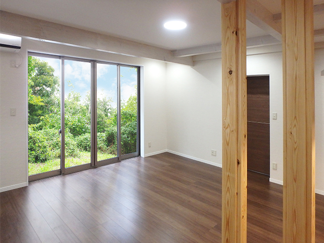 リビングには採光・通風に優れた大きな窓を新たに設置しました。明るく開放的な空間になりました。