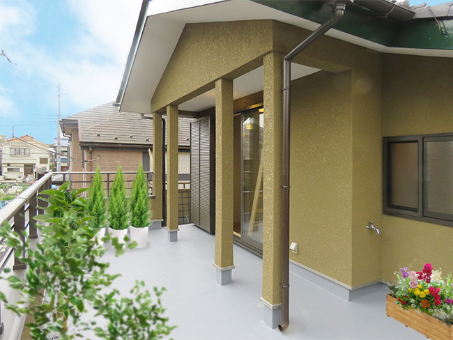 基本的にはスケルトンにしてバリアフリー対応にし、ご両親が家の中を移動しやすいようにリフォームしました。1階はLDKとお父様の部屋、2階はお母様の和室と娘様のスペースとしました。今まではお父様の部屋が2階にあり上り下りするのに15分位かかっていました。一部減築した2階には広いテラスを作り、植物を沢山ならべて2階にいながらにして緑を楽しめるようご提案しました。バリアフリーリフォームでは、介護する側・される側の双方が充実した毎日を送れるようなプランニングを心掛けています。