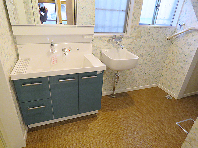 1階ユーティリティーには、介護用に多目的流しをつけました。