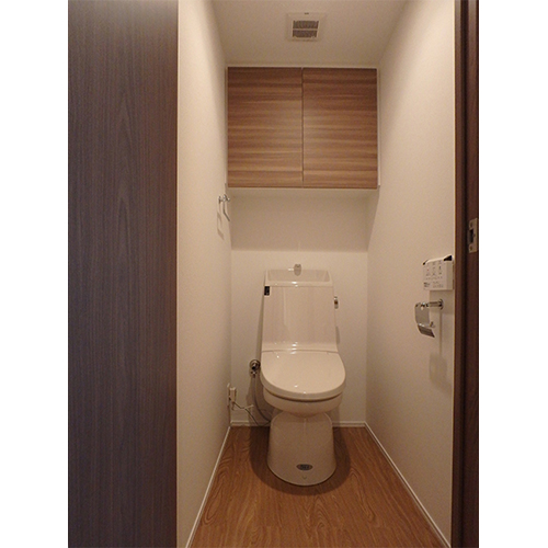 元々、各部屋の収納扉は白い鏡面扉でしたが、木目調の扉にする事で、落ち着いた雰囲気に変わります。便器設備も新調し、毎日のお手入れも楽に、節水にもなり、安心してお使いいただけます。