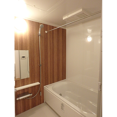 味気なかった浴室の壁一面をアクセントにもなる縦の木目調にし、浴槽もラウンド型からスクエアな型にリニューアルしました。新しく生まれ変わった浴室で一日の疲れも癒していただけます。