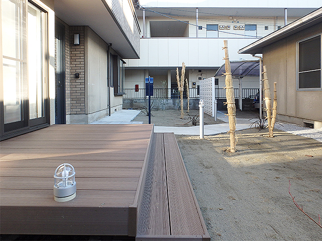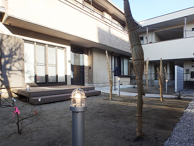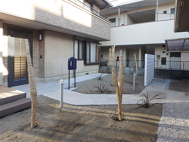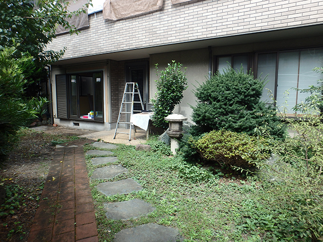 27年前に2世帯住宅として新築されたO様邸。新築時にサンルームを新設され、庭には灯篭や庭石、四季折々に咲く植栽が配置されていました。新築当時は親世帯であるご両親が中心に庭木の手入れをされていましたが、ここ数年は手入れが殆どされなくなり、庭木も伸び放題、玄関先までの長いアプローチは雨の日は滑りやすく、段差もあり歩きにくい状態になっていました。又、サンルームの使用頻度や用途も少なくなり、物置状態となっていました。 【1】玄関先まですべりにくく歩きやすいアプローチに改善する 【2】手入れが少なく、少しでも実の