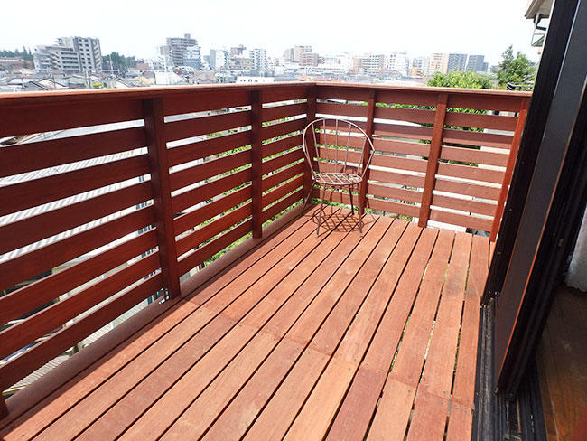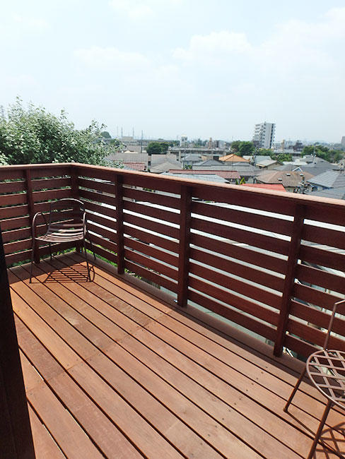テラスサッシにして、リビングの延長に外の空間が欲しいという事、海外での生活が長く、外に使うデッキ材は人工木やアルミ素材のフレームというよりも天然木を使いたいとご希望がありました。デッキを支えるフレームだけは鉄骨で製作・施工する事になりました。