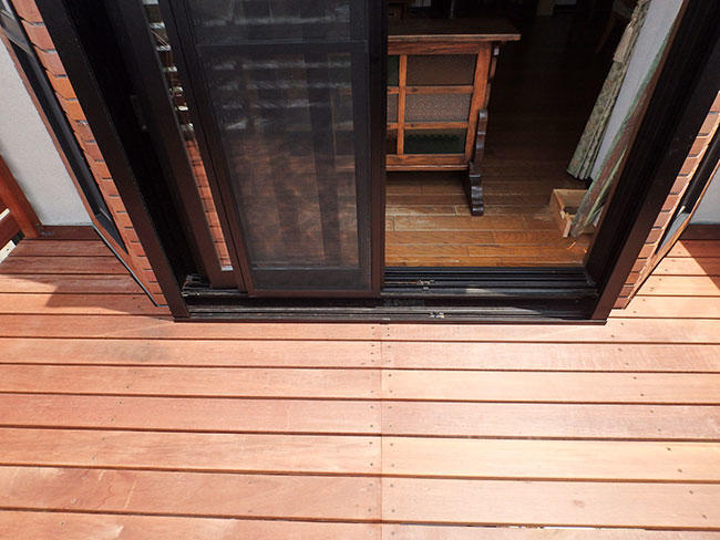 今回のリフォームのご依頼は、玄関ドアーの交換とリビング側にテラス(ウッドデッキ)を設けて、外に出られるようにしたいというご要望からリフォームの計画が始まりました。