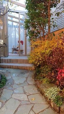 既存の塀を活かして、和洋折衷の美しい庭園に