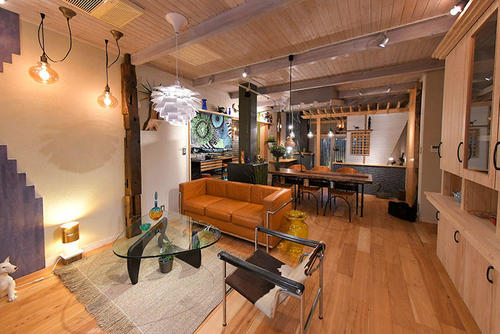 ベテランの建築家が辿りついた究極のショールームは、50代から70代の人の為に健康・長生き・趣味・楽しみといったテーマで十人十色のお客様の御要望を形にするきっかけになると思います。一つの家を想定したこのショールームは具体的な様々な天然素材を使用し、見て・触って・体感して頂ける事で自分の家として、より具体的にイメージ出来るようになっています。例えばピーカンナッツが 年に渡って採れるピーカン材の無垢フローリングやウォールナットの1枚板のカウンタ―、杉の板を貼った既存の本棚、パイン材を貼って白くペイントした天井、藁麻入りの塗壁、そして千利休の待庵と同じ2帖の茶室や竹と昔ながらの板戸に囲まれた坪庭を見ると昔にタイムスリップするような不思議な感覚になります。