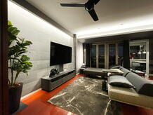 壁掛けTV+石目タイル+間接照明でLDKが 驚きのホテルライク空間に✨