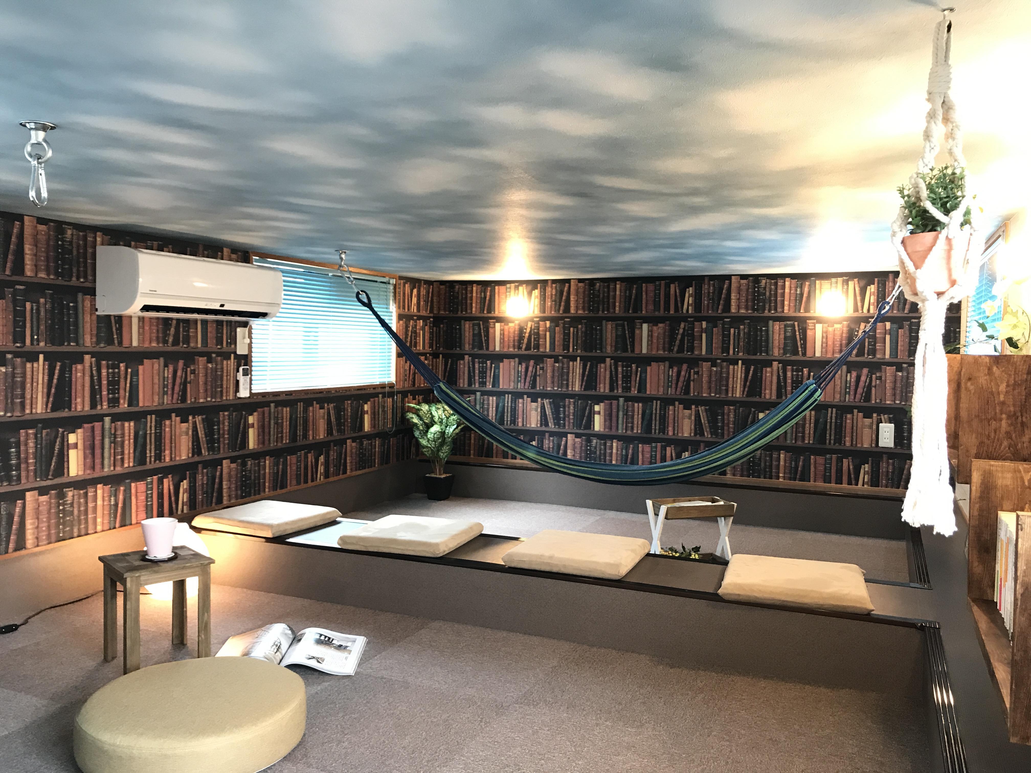 本とハンモックをコンセプトにしたシェアハウス。グルニエにくつろぎのハンモックスペースを作りました。 静かに本を読みながら揺れるハンモックで至福のひとときを