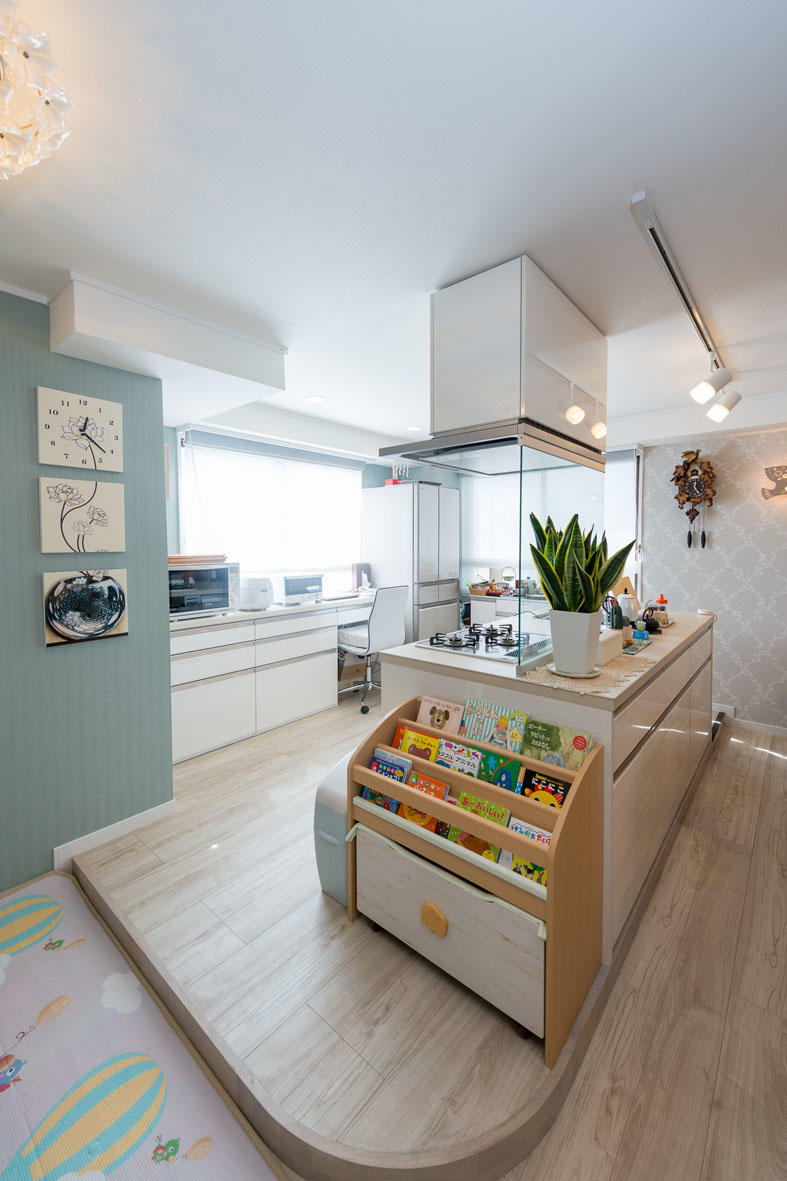 元々、I型のクローズキッチンでしたが、狭くて物が多く、使いにくかったのでリフォームしたいと長年思い描いていたようです。リフォームにあたっては、オープンキッチンにして家族が集まれるようなステキなキッチンにしたいというご要望でした。