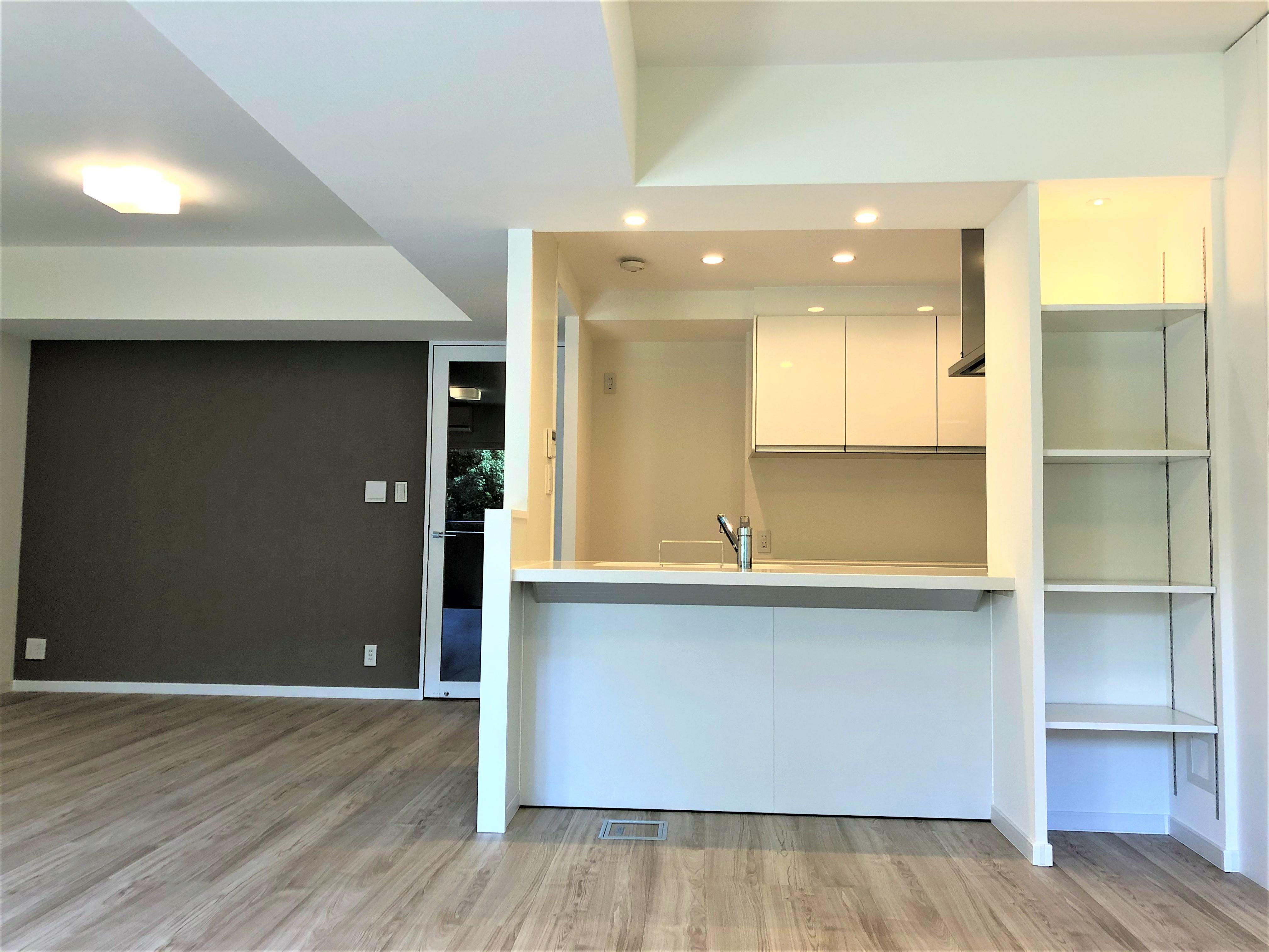 お子様が独立され、今後のセカンドライフをきっかけに中古マンションを購入しリフォームしました。 ペニンシュラキッチンを交換し、壁一部分を開口する事で開放感とプライバシー空間を確保しました。