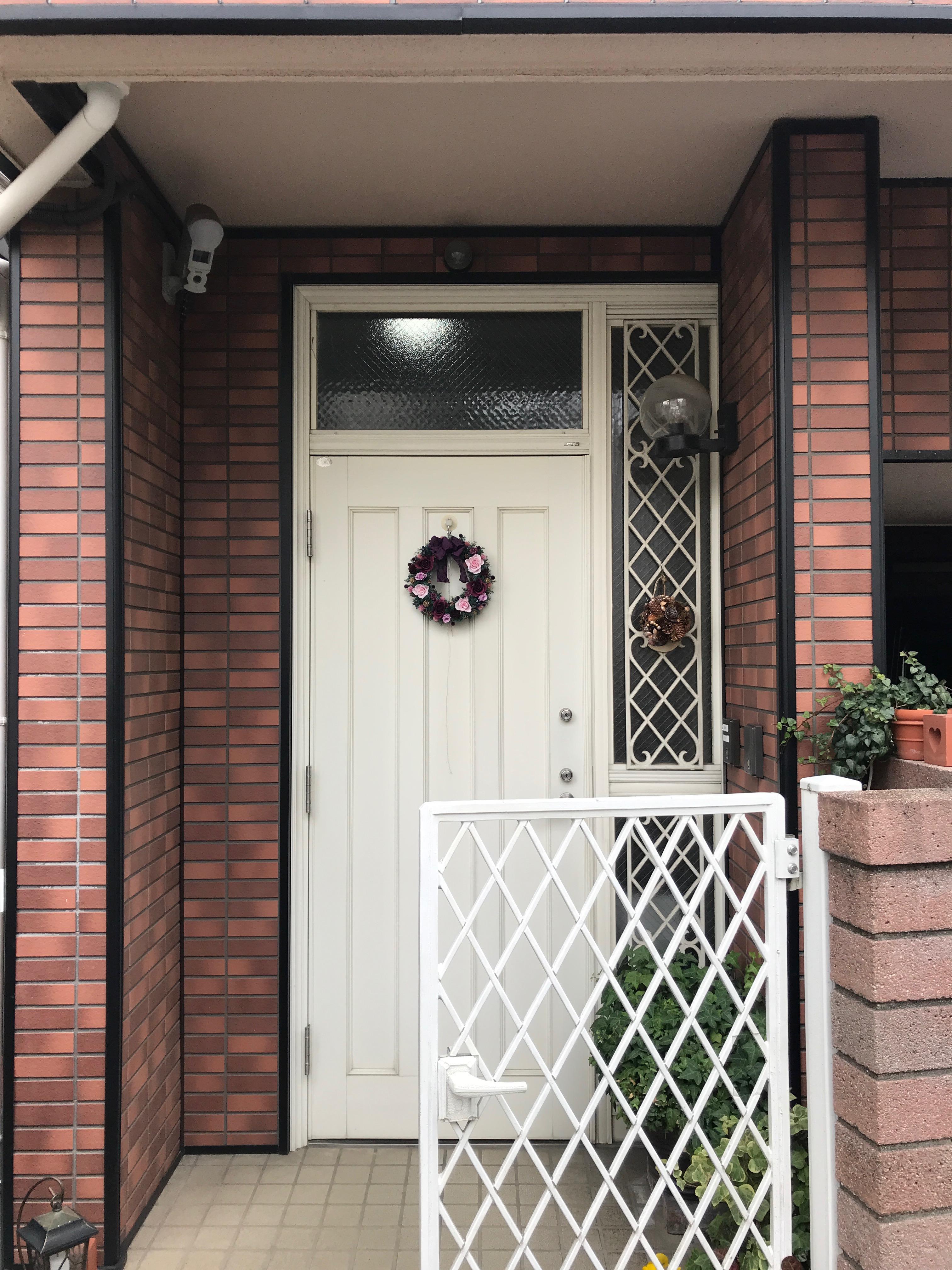 工事前のアルミ玄関ドアはランマと袖壁のガラスが室内を明るくしてくれるのがとても良いのですが
