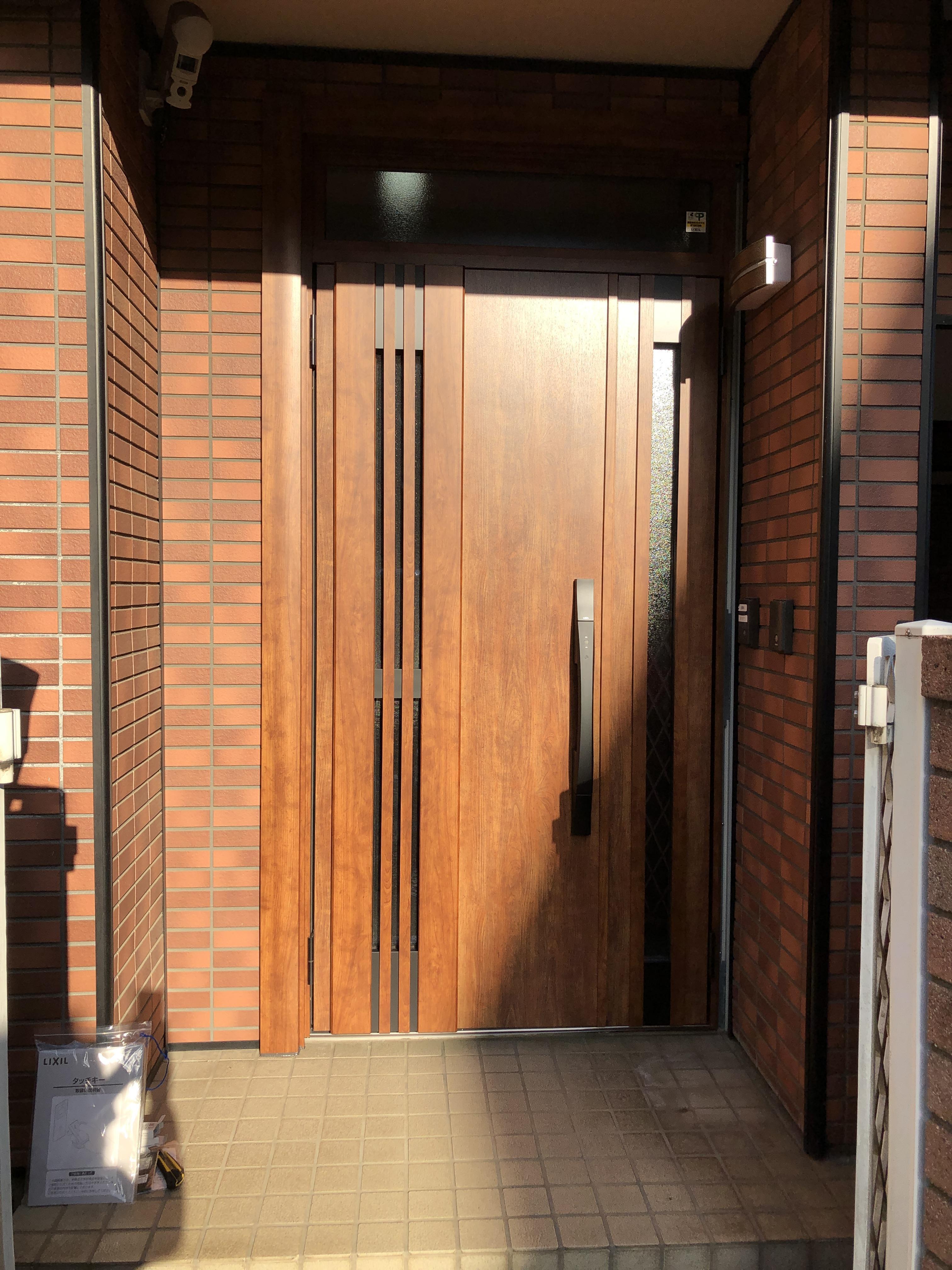 おうちの外壁のタイルとマッチした色、デザインのドアで更に素敵なお住まいになりました。