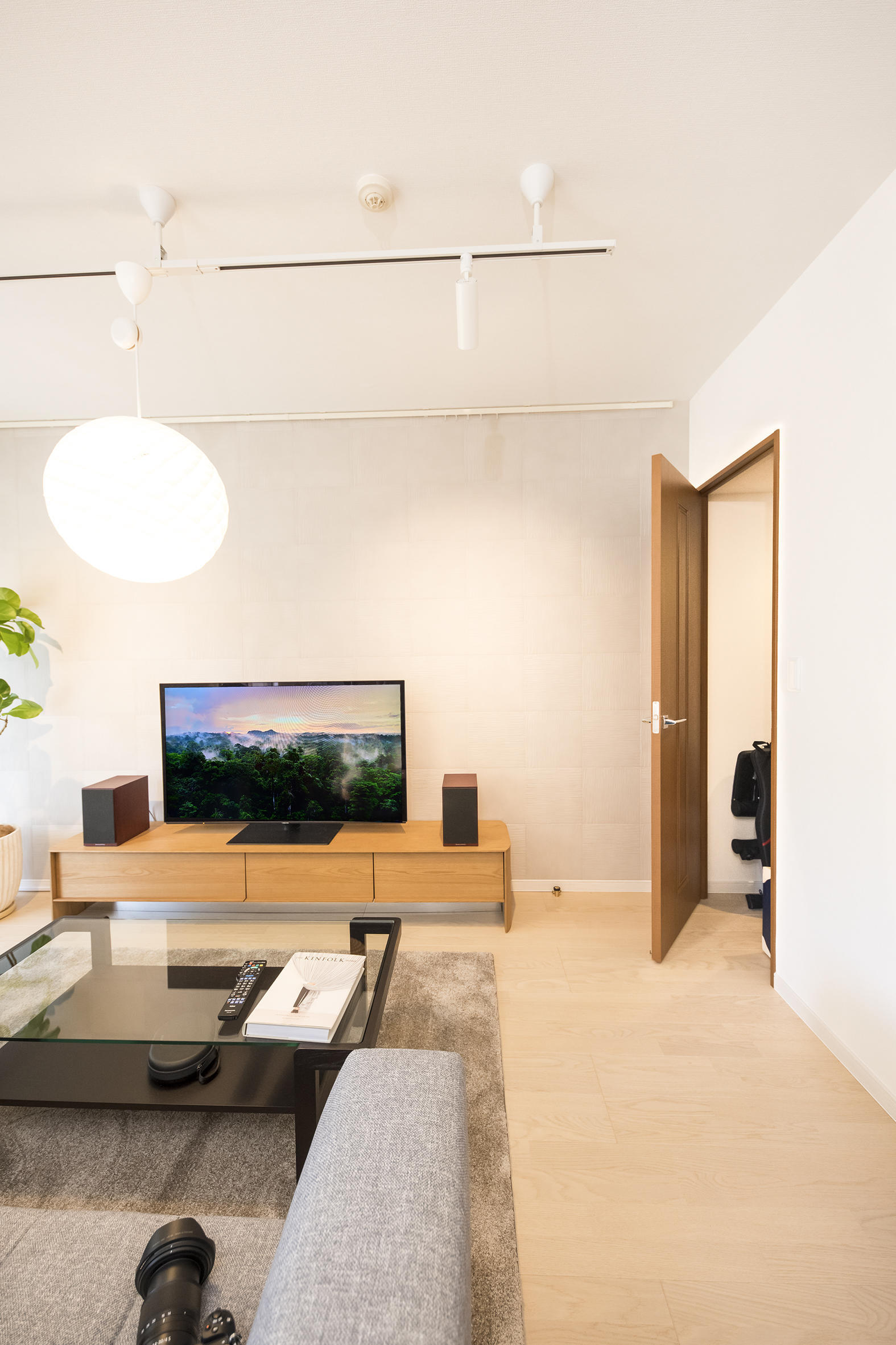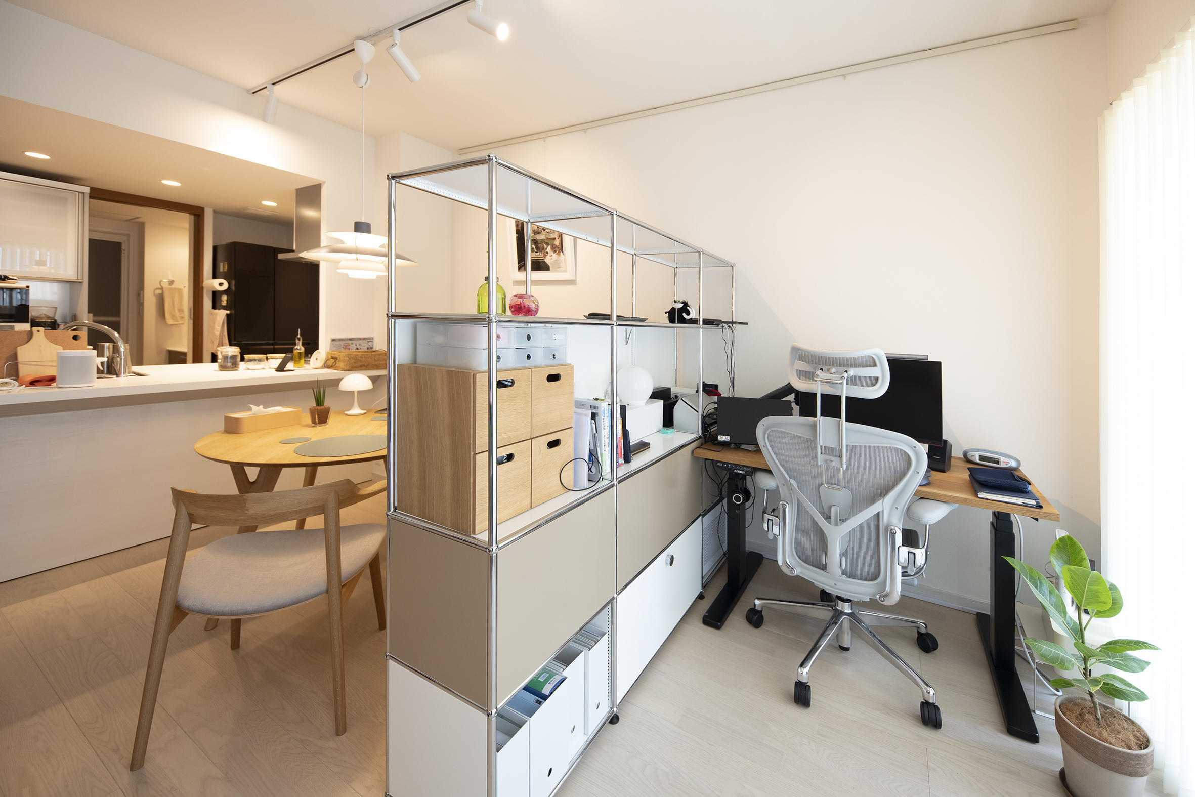お施主様、家具や照明等、明確なイメージをお持ちでいらっしゃいましたので そのイメージを壊すことのないような内装材のご提案と空間づくりをさせていただきました。 冒頭にも記載しましたが、今回プランでは動線がただの通路とならず意味のある空間となるよう 心がけました。 時世柄、テレワークされていらっしゃる方も少なくないと思います。 こちらのお施主様も今回リビングにそのスペースを設けられました。 在宅時間が多くなるからこそ、ご自宅で『深呼吸して心地良い』と感じていただけるような リノベーションをこれからもどんどんご提案していきたいと思っております。
