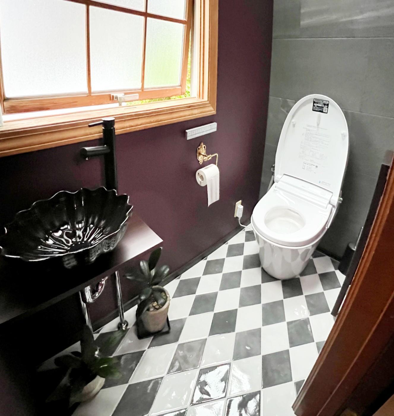 Y様より今回の工事について「ヨーロッパのような斬新な色やタイルを使いたい」とご要望を受け、ご用意して頂いたイメージになるよう壁紙やタイルを選定させて頂きました。 エコカラットも貼っているので、機能的かつ斬新なデザインのトイレ空間にするのもおすすめです。