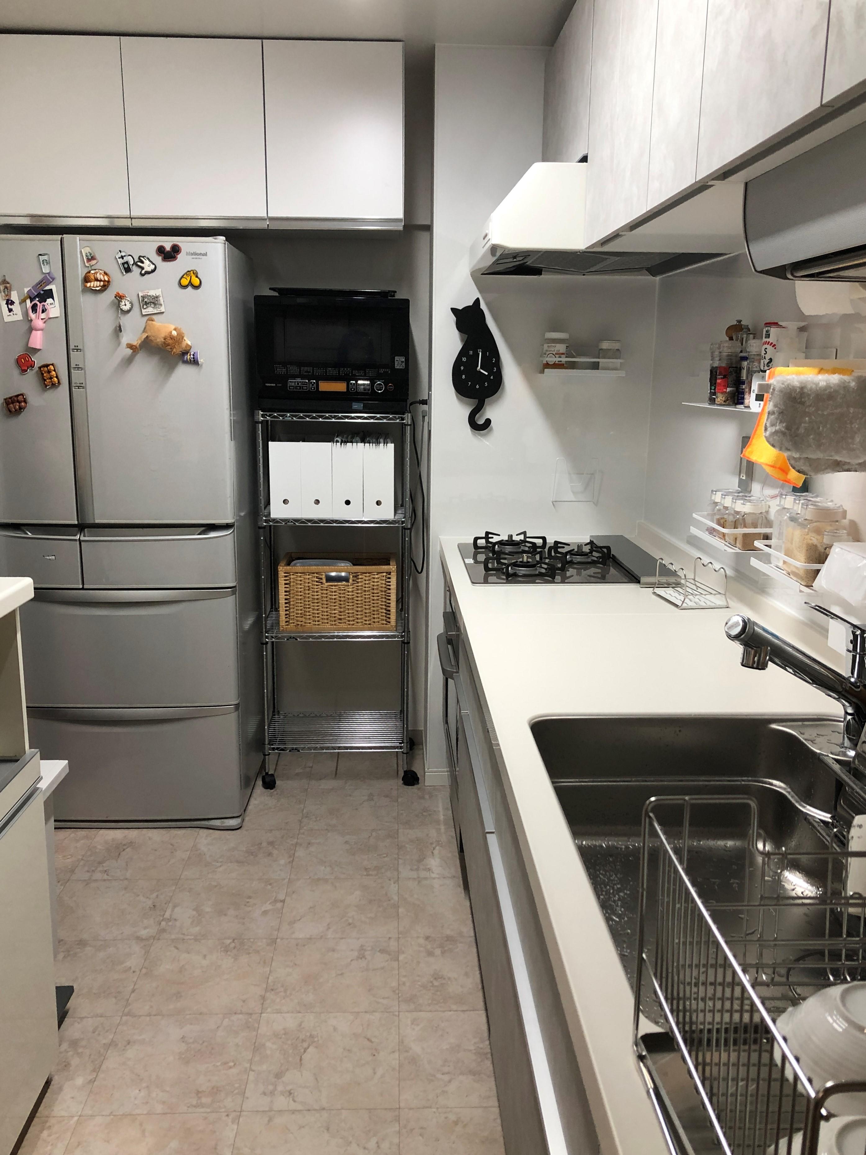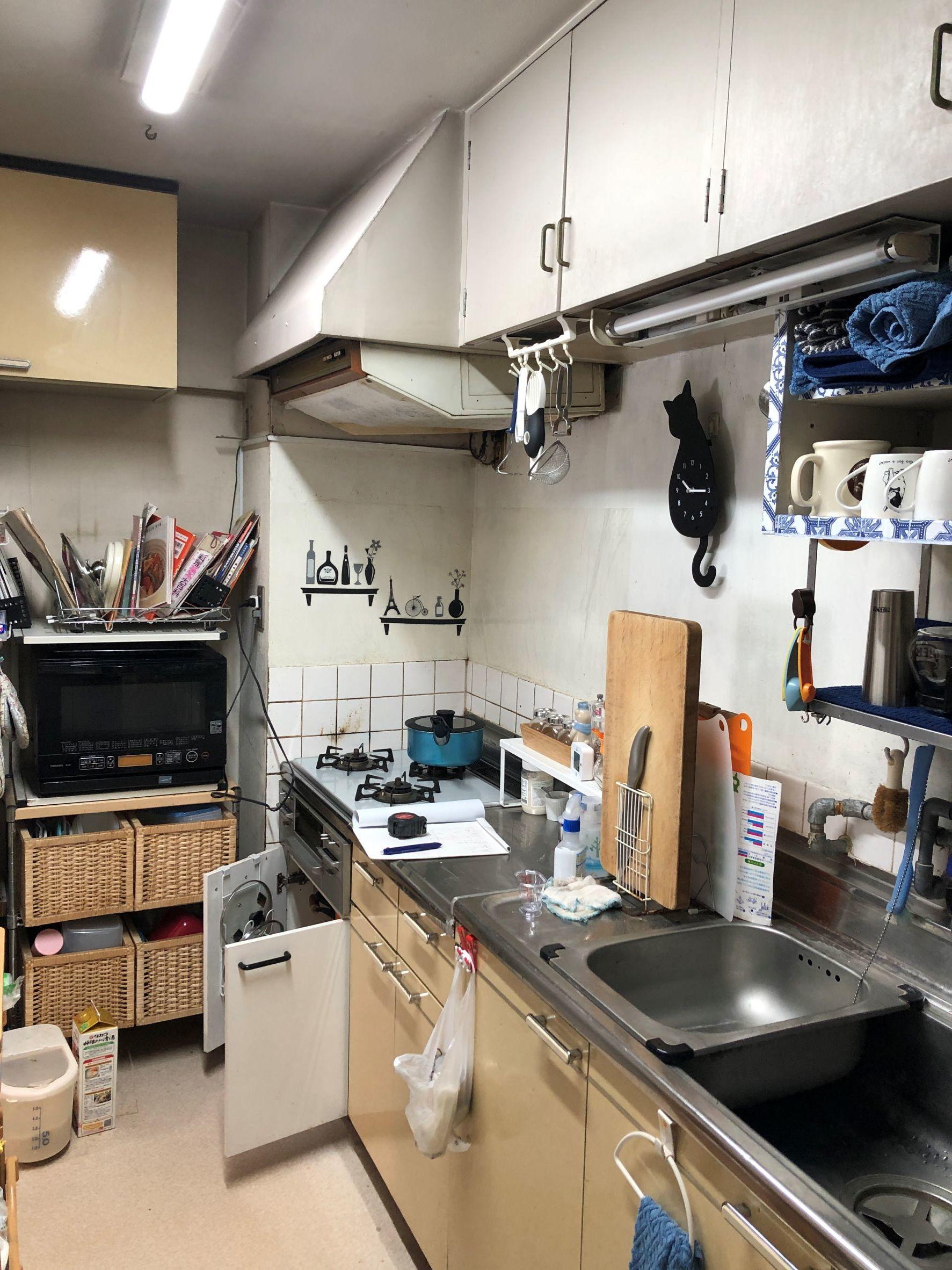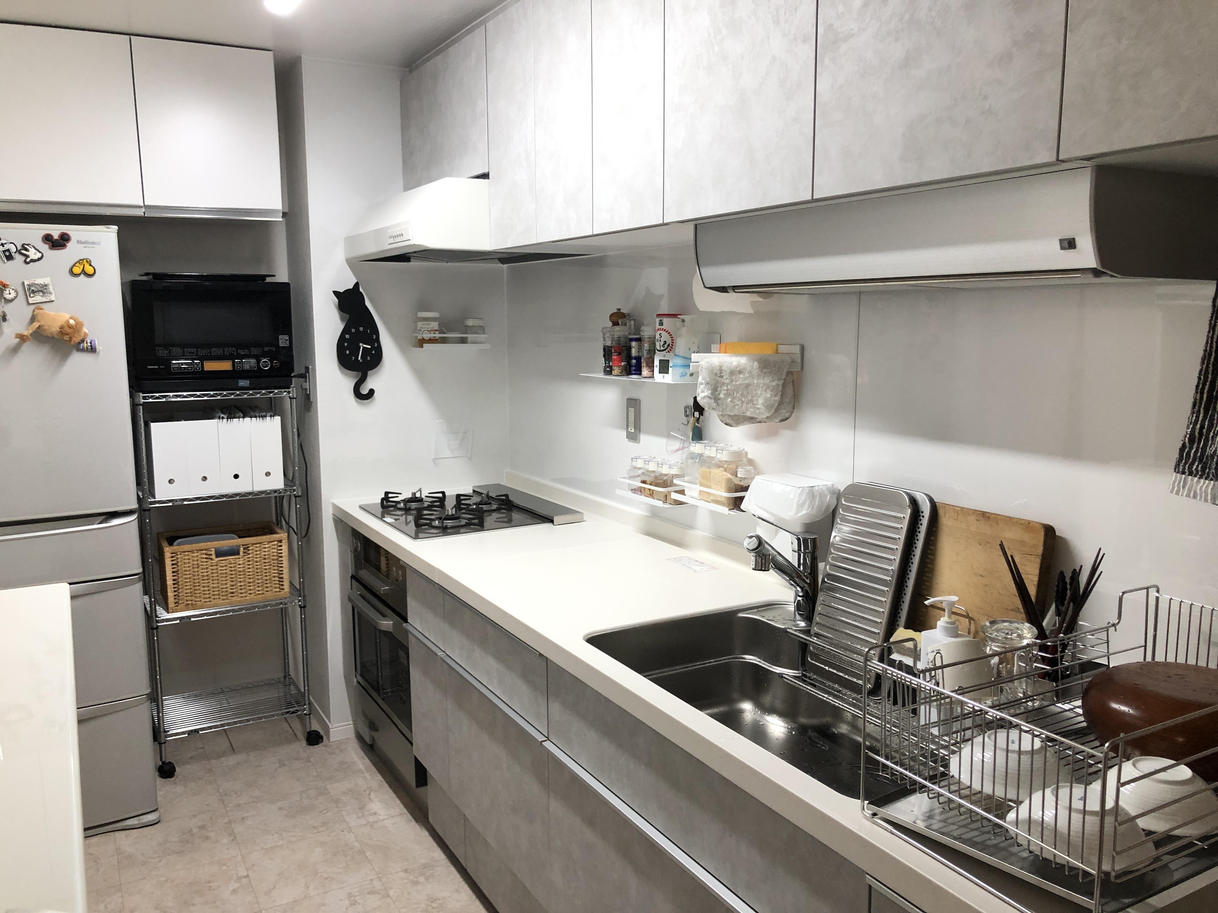 今までマンションの管理会社様を通じキッチンのコンロや水栓を交換する修繕は行ったそうですが、流し台の老朽化も目立ってきたため、今回はシステムキッチンへの交換を希望され私共にご相談いただきました。
