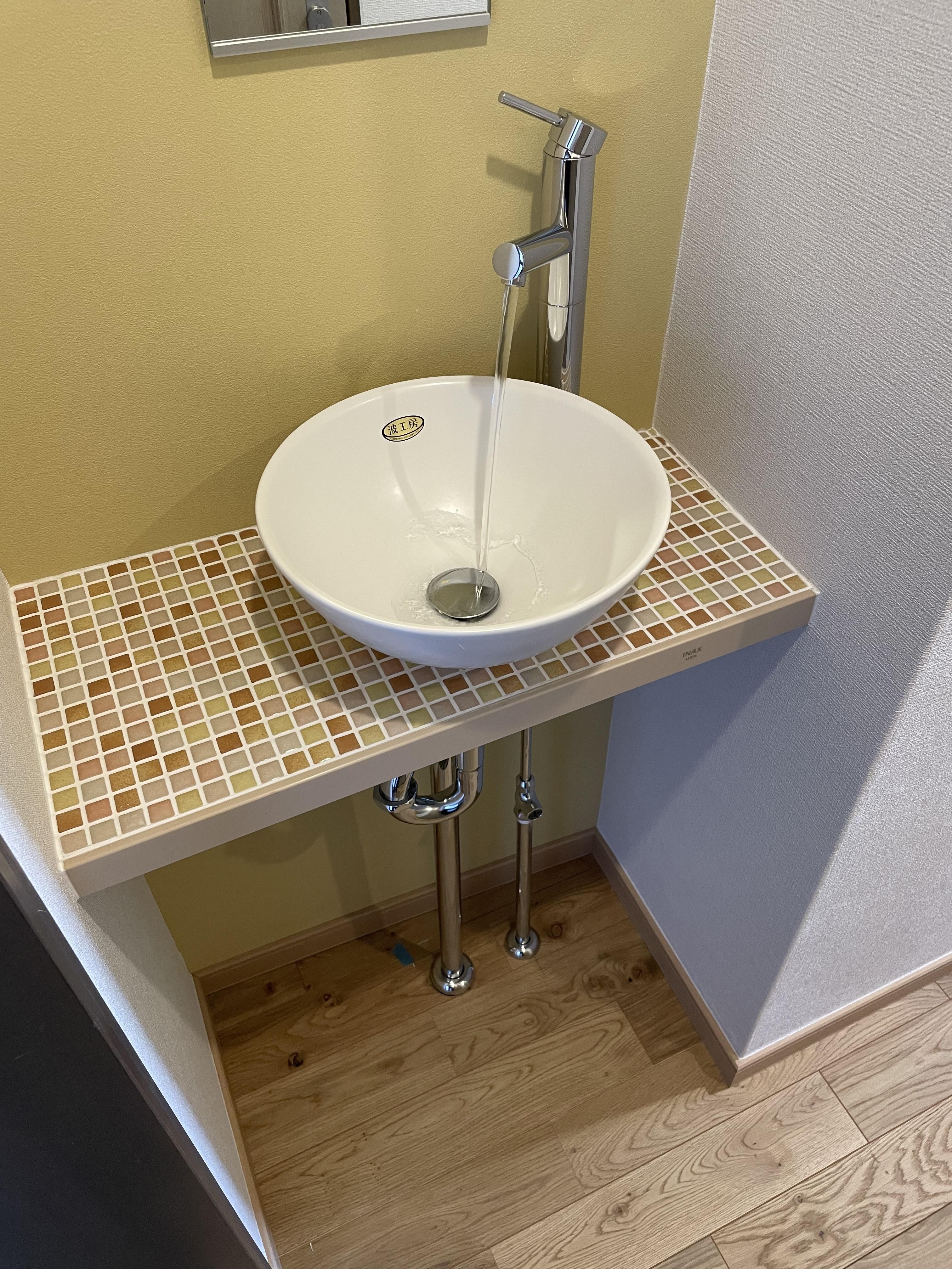 シャワー室をなくして浴室を設置。 また廊下になる場所には新しく手洗器を設け、日常を彩る気分が上げるスポットに。