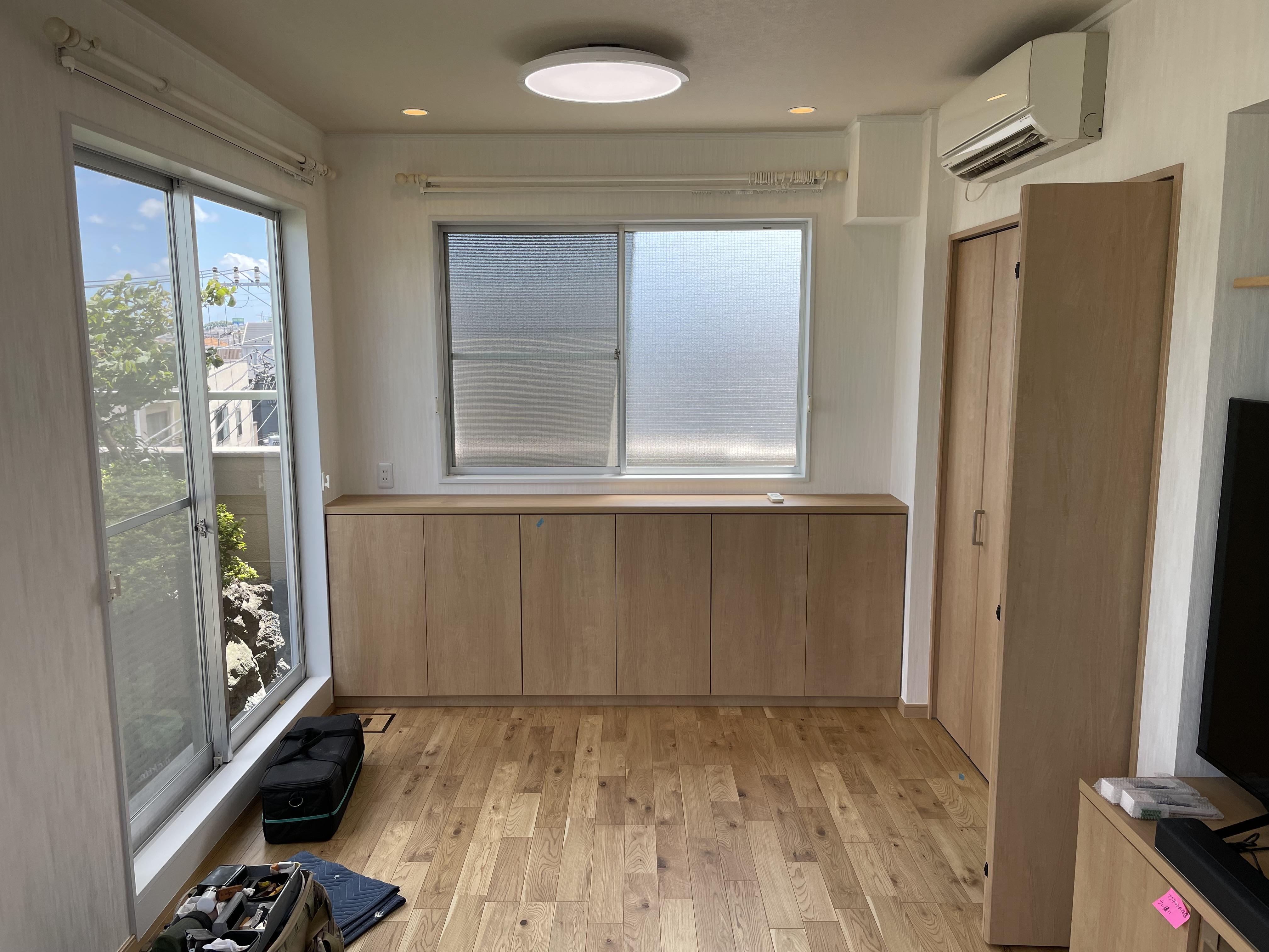 子供部屋。当時は自分のお部屋が欲しい!!と作ったお部屋もこどもが大きくなれば やがて自立していきます。 そんなお部屋をそのままに?区切っていた子供部屋を繋げて大きな空間へ。 広々としたセカンドリビングで大きな窓を活かして景色を眺められるように。