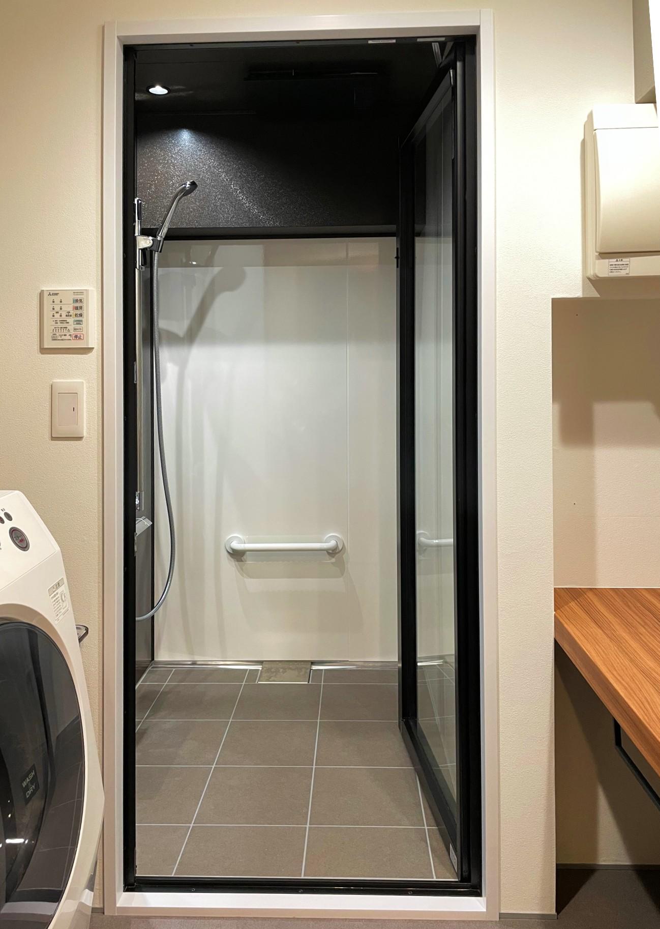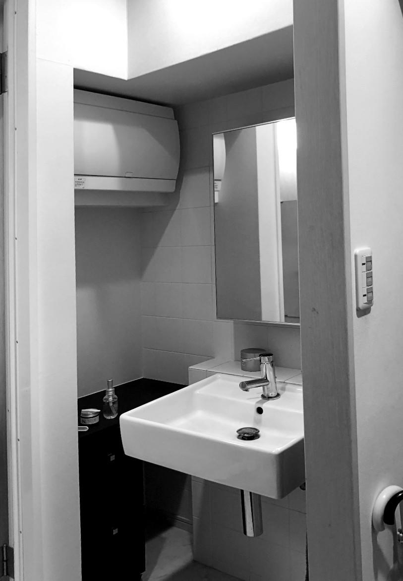 今回のリフォームは、自宅マンションの浴室・洗面のスペースが狭く、広げたいとのご希望で、ユニットバスからシャワールームへ交換と洗面スペースを広げるリフォームを行いました。洗面カウンターを取り付けるにあたり、上部の梁や機器等との干渉に配慮して