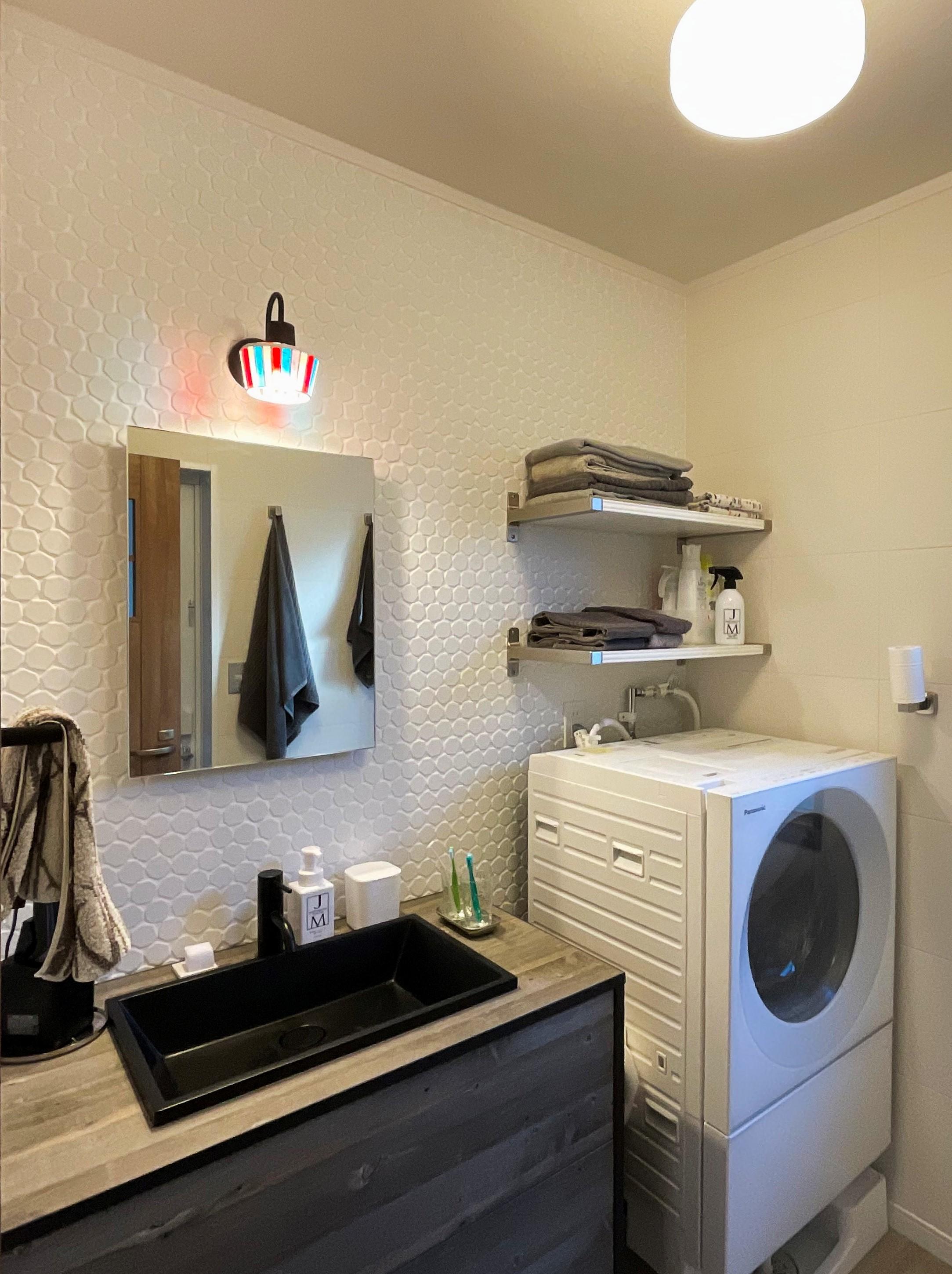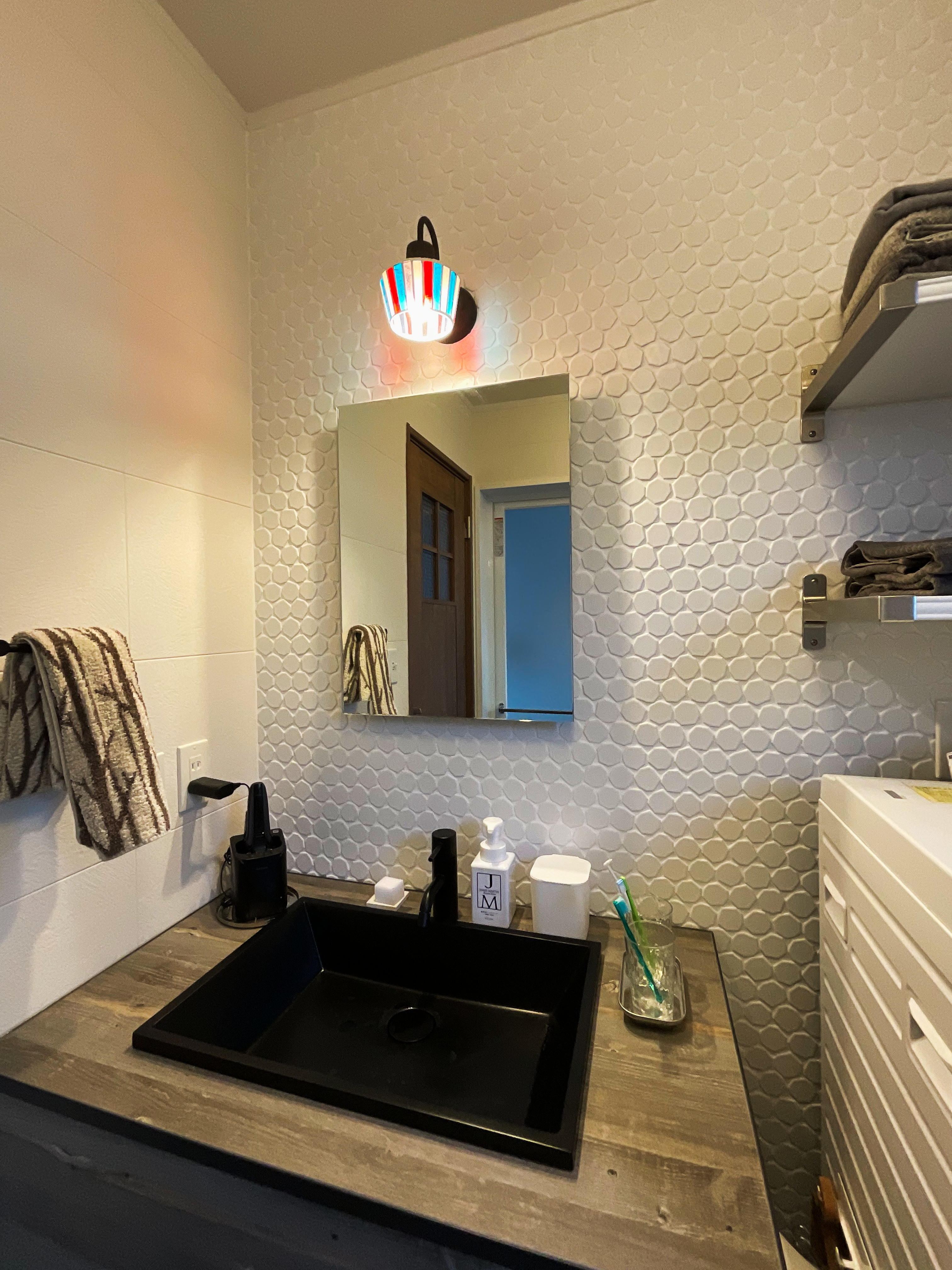 洗面台や、壁のタイルなどにも具体的な仕上りのイメージをお持ちでしたので 施工的な部分や使い勝手などをご提案させて頂きました。 スタイリッシュに仕上がり、出来上がりをとても喜んで頂け嬉しく思います。