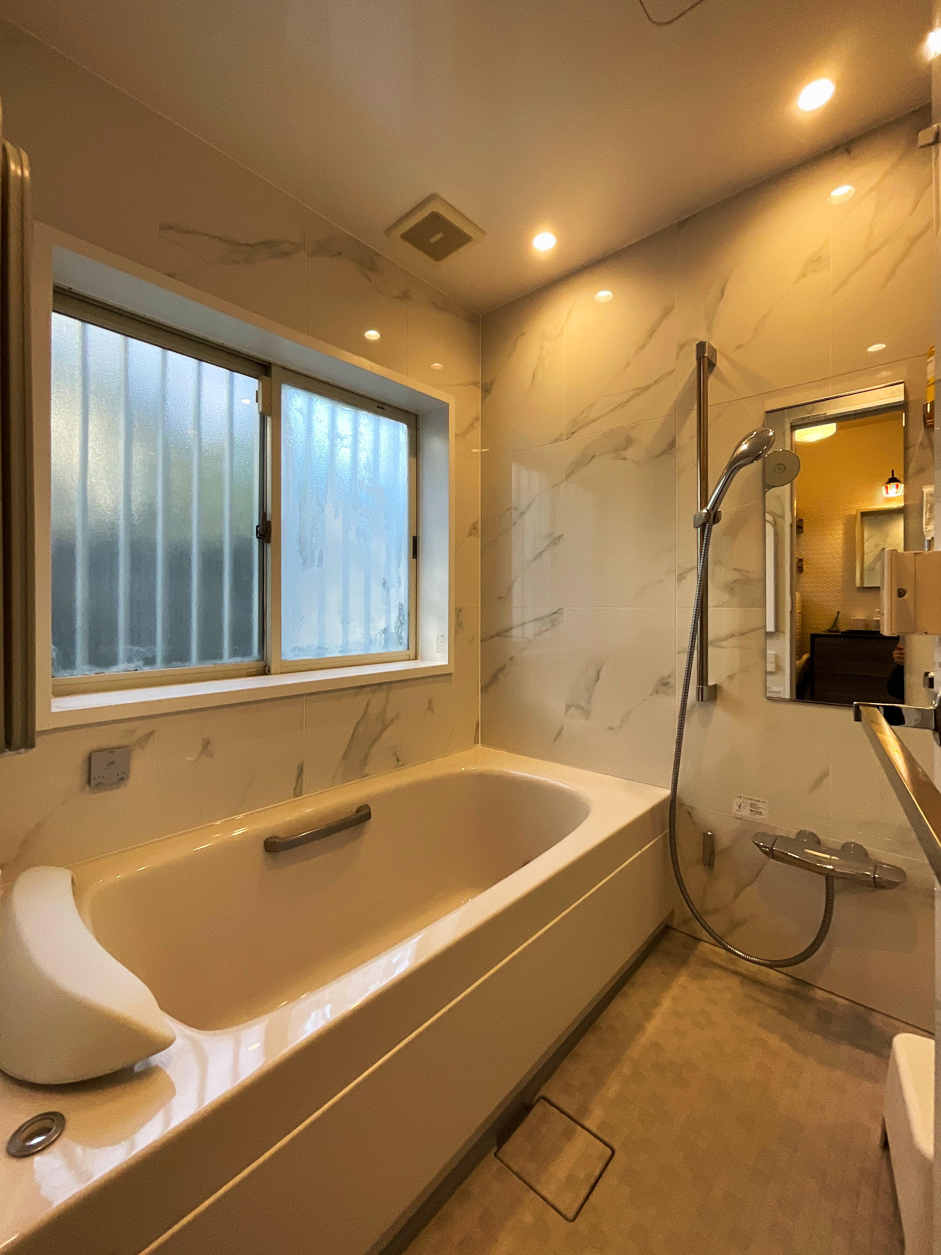 浴室と洗面化粧室が全体的に経年劣化してきていたので だんだん汚れが取れにくくなり、掃除がしにくくなってきたので交換をご希望。 タイルを使って、グレードアップした空間にしたい、スタイリッシュにしたいというご希望がありました。