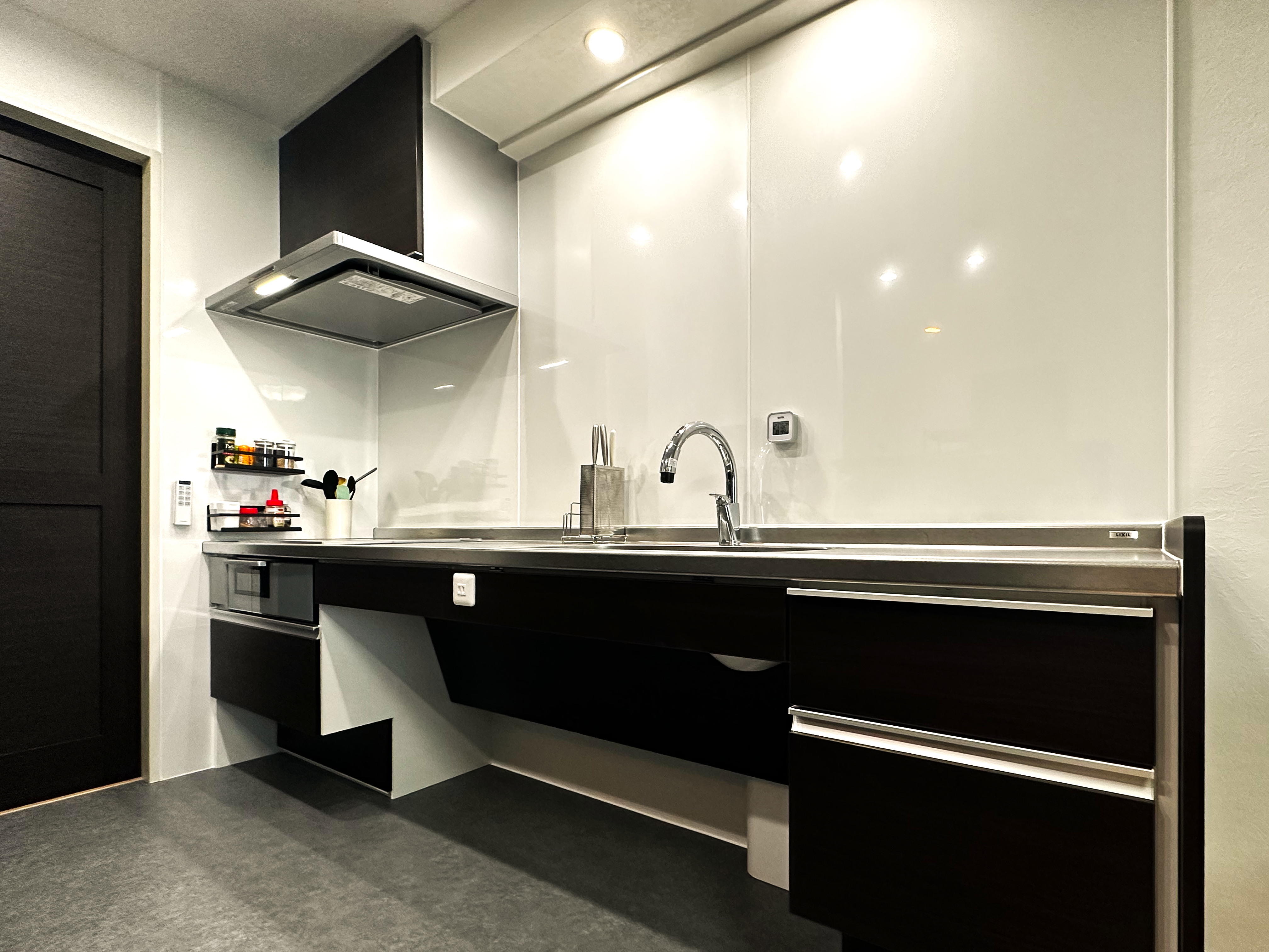車いす対応キッチンで使いやすくなったリフォーム事例です。 詳細は明成建設クラテルリノベHP でご覧ください(ページ左上の店名下のリンクをクリック)その他の施工例もたくさんございます。