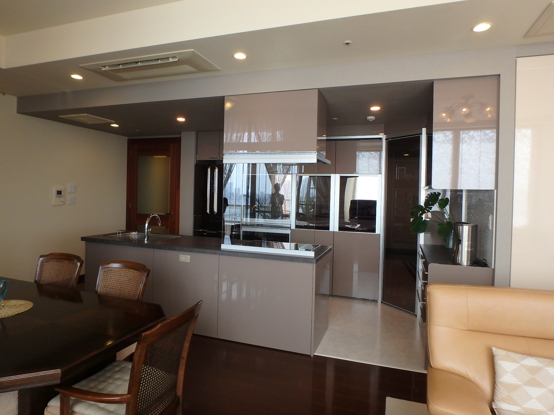 リビングとの間の壁を撤去し、オープンキッチンにしたい。というご要望でした。