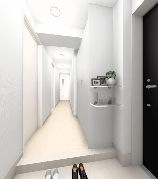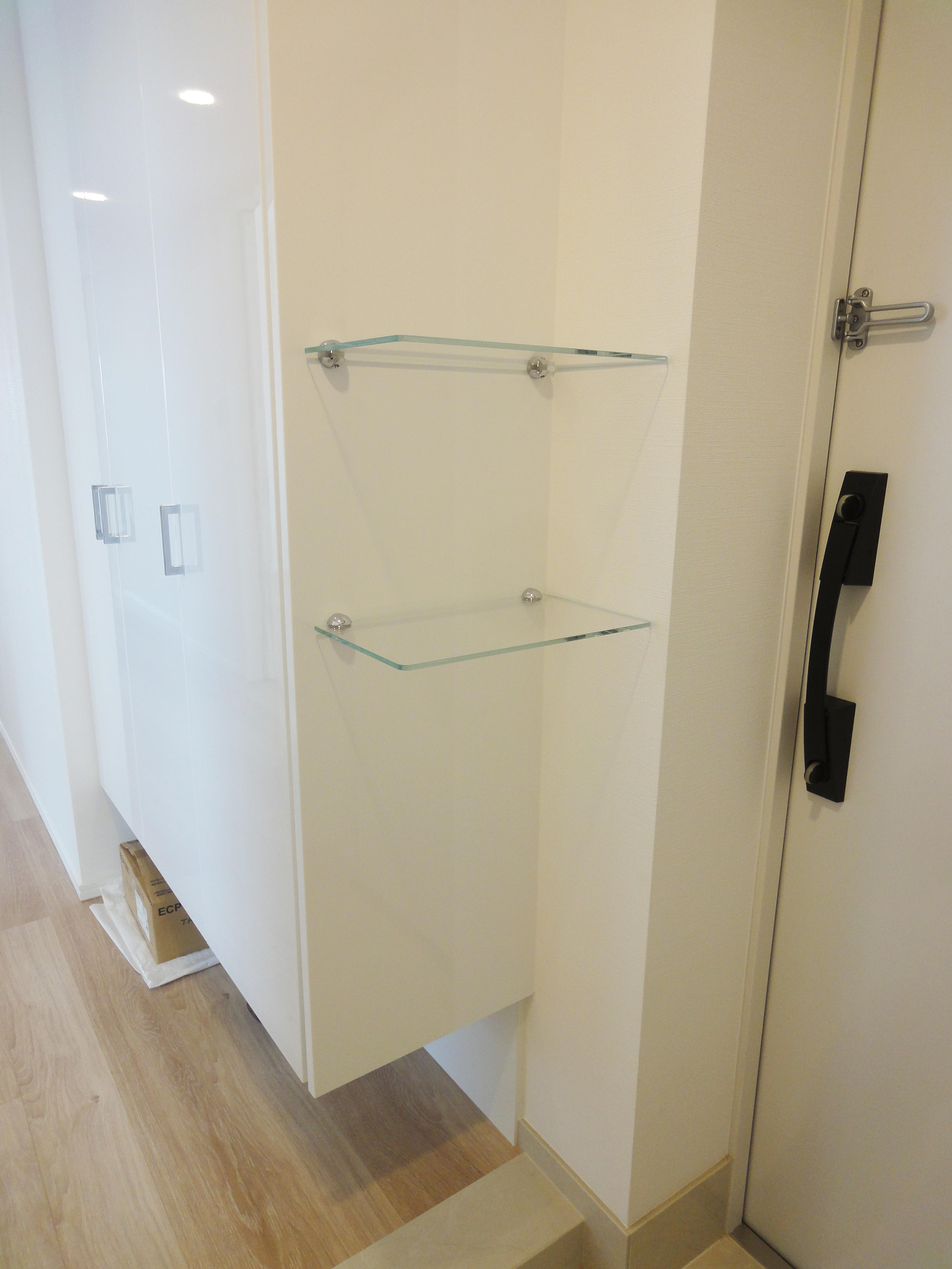 玄関収納脇にはガラスのカウンターを2段取付けました。
