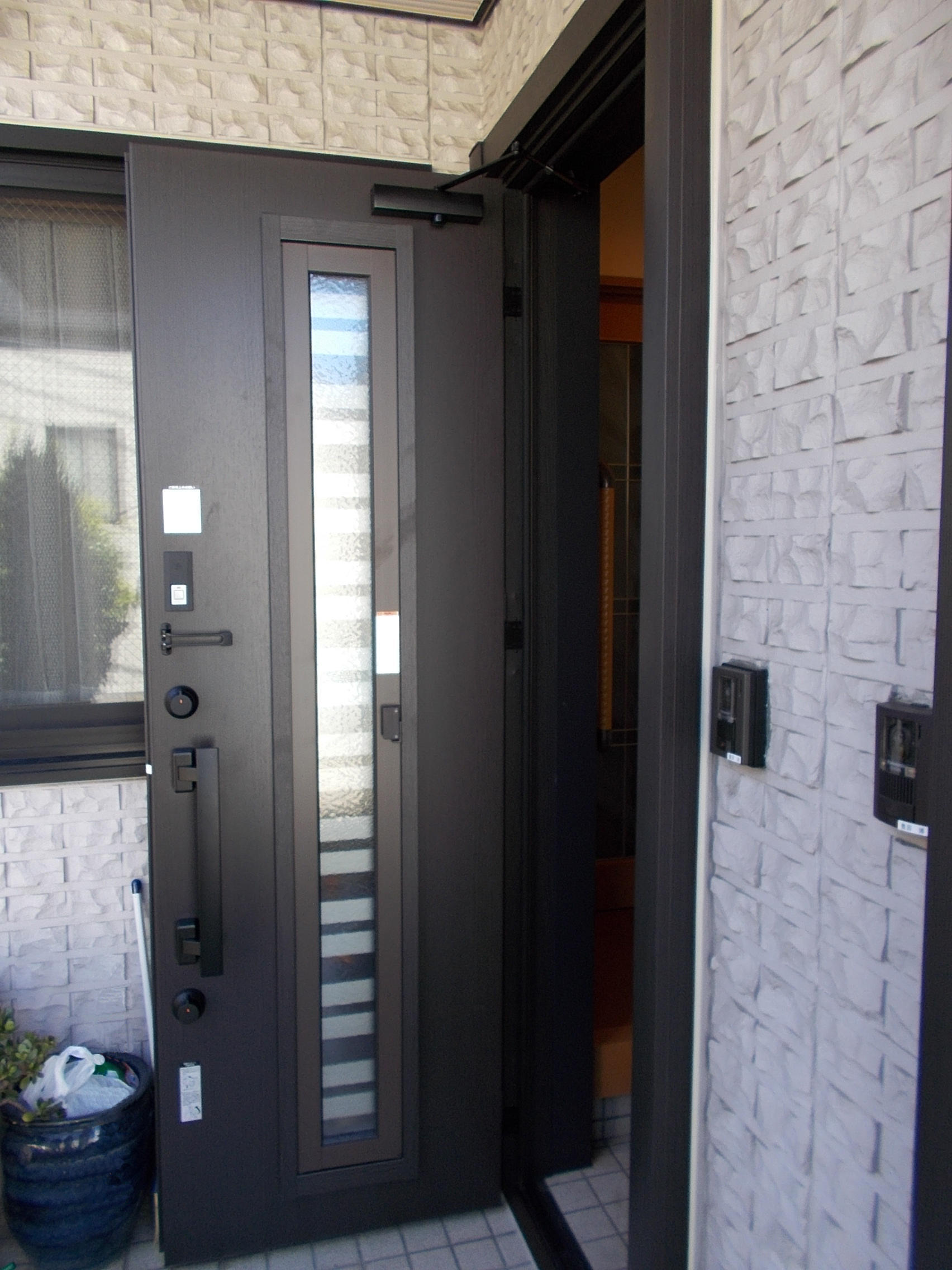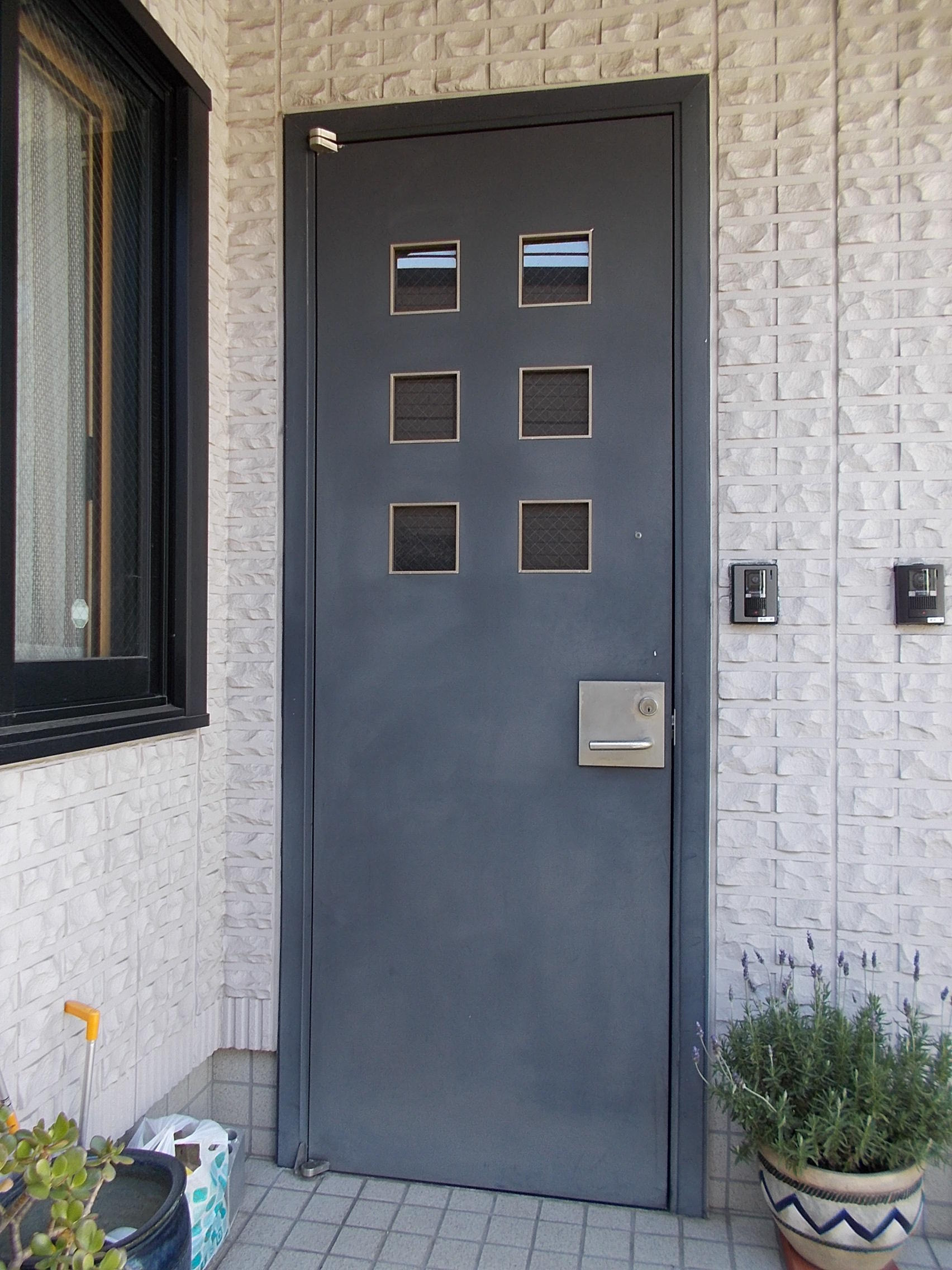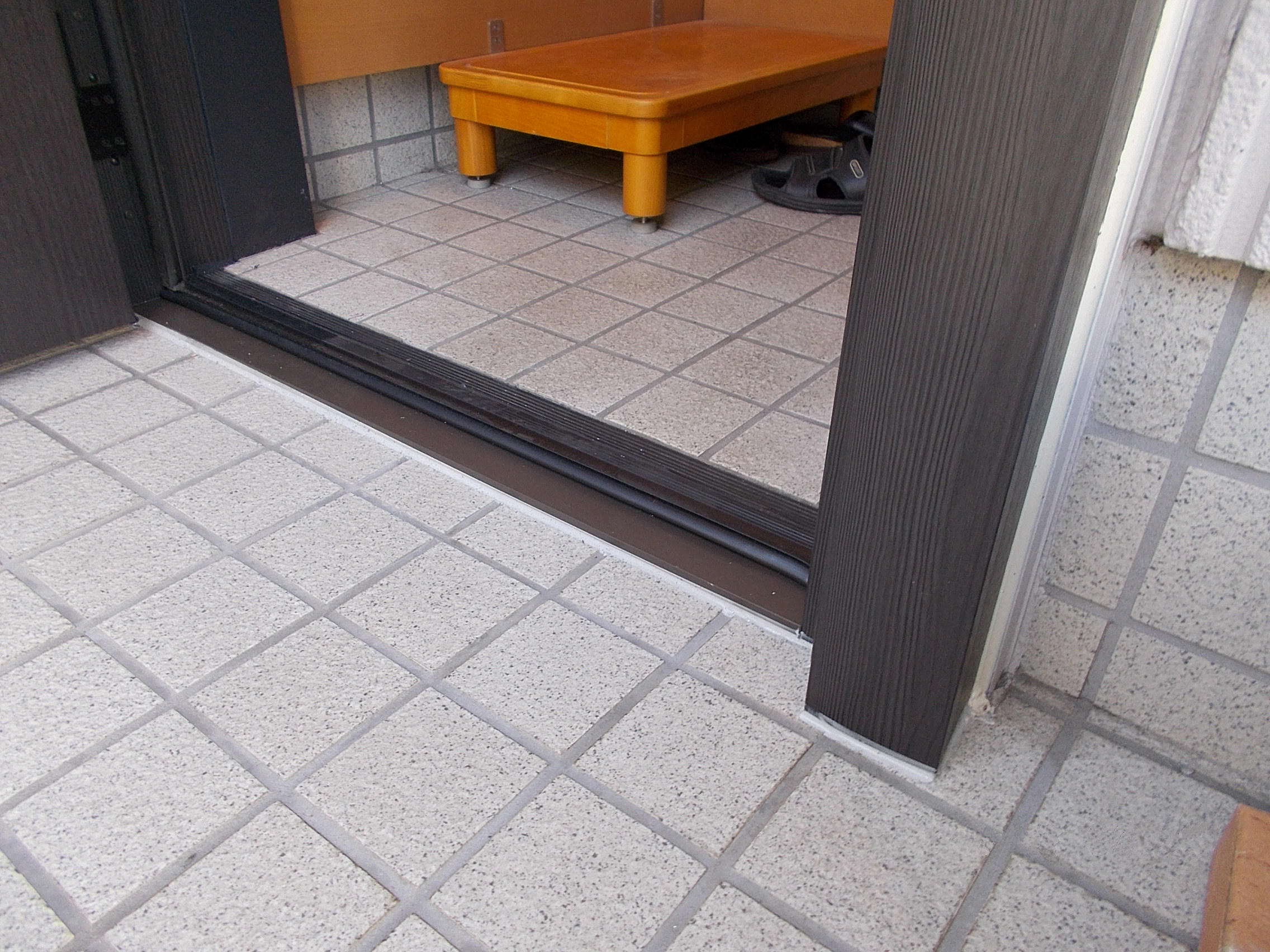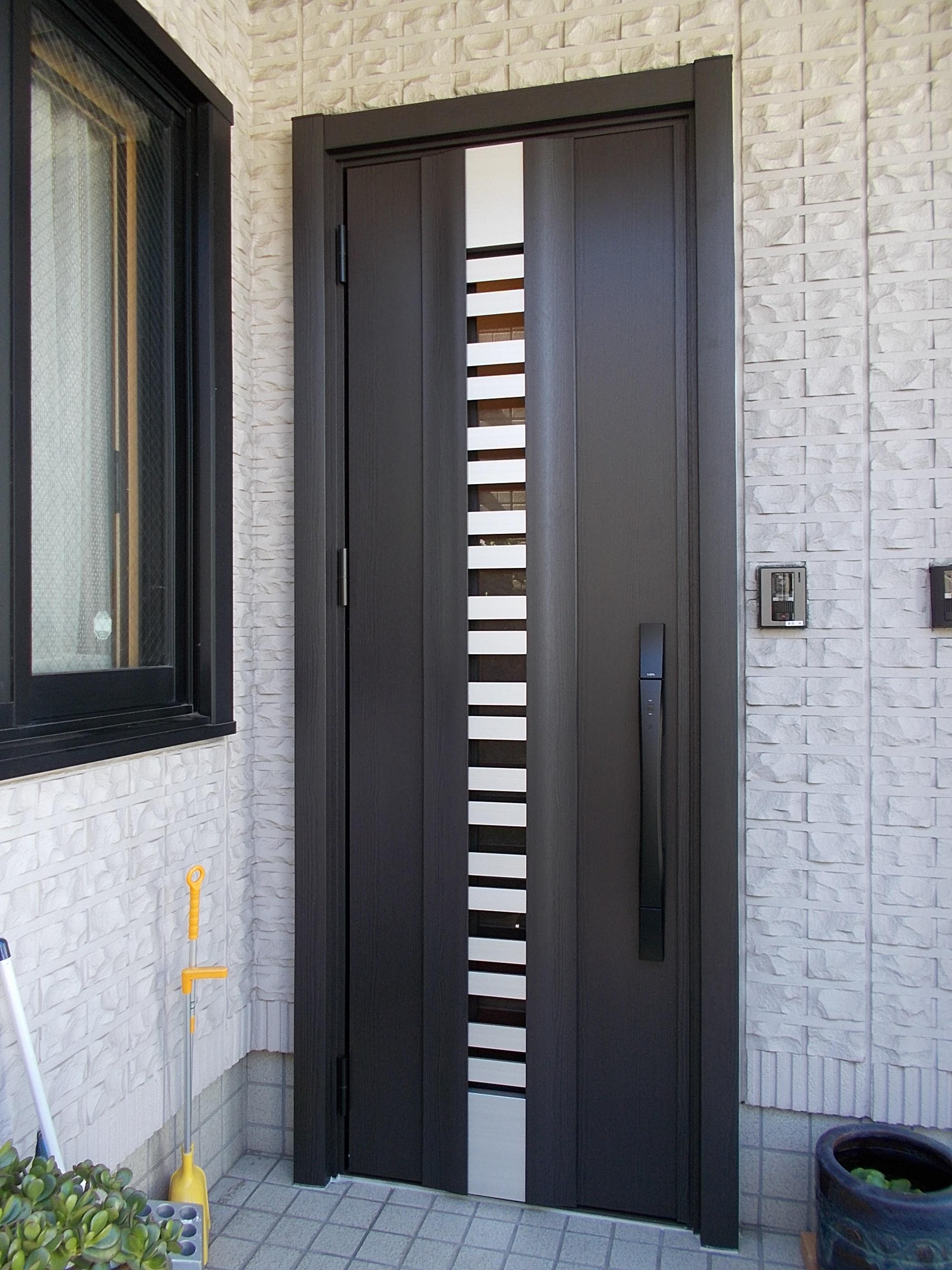 戸建ての2世帯住宅にお住まいのT様。現状のドアはすき間が生じている為、交換を検討されていました。防犯性、利便性もよくしたい、お母様世帯は下枠部分がつまずくことがないようにして欲しいとのご要望がございました。また今回は目黒区のリフォーム助成金を使って工事を行い、10万円の助成金がでました。