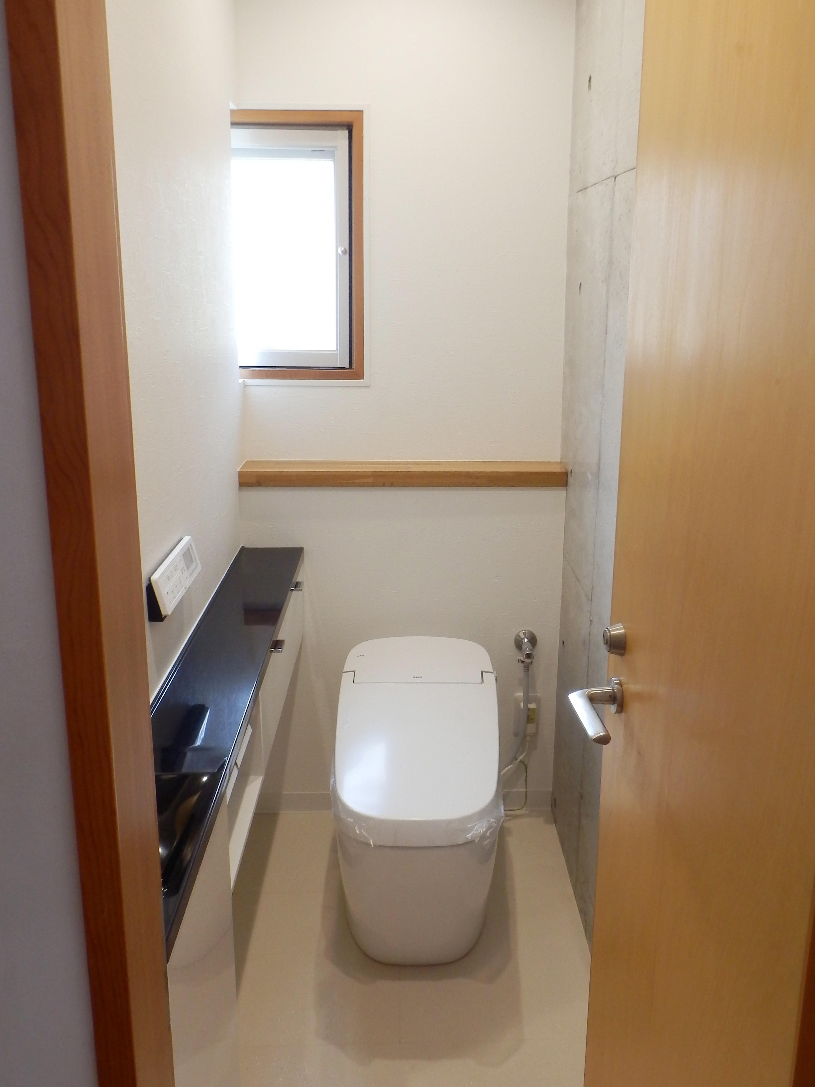 LIXIL サティスGタイプにお取替え。シャワールームをユニットバスにしたことによりトイレのスペースは狭くなりましたが、もともと十分な広さがあった為、ちょうど良い広さになりました。手洗いカウンターはLIXILのキャパシアです。