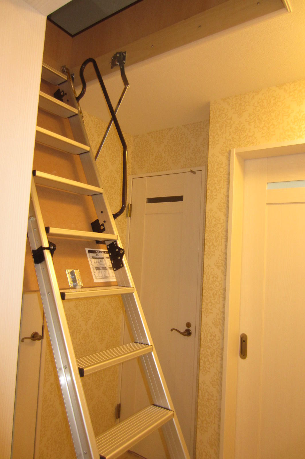 浴室と洗面脱衣室を広くするために3階天井収納への階段を撤去、はしごを設置しました。