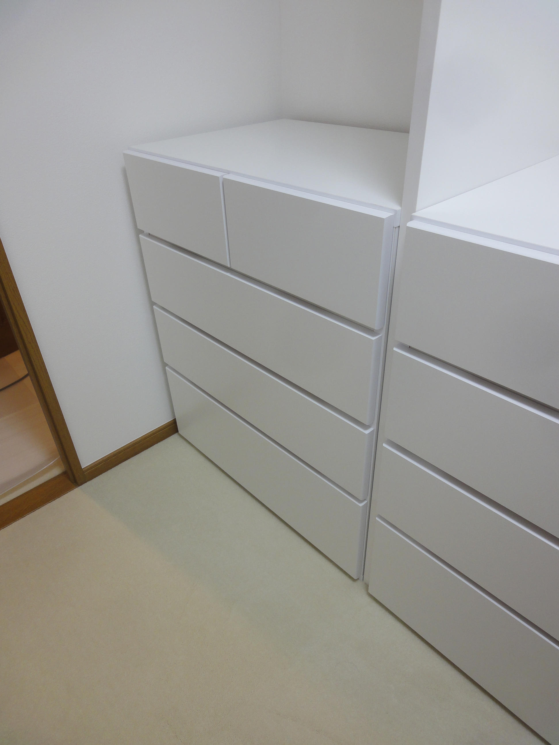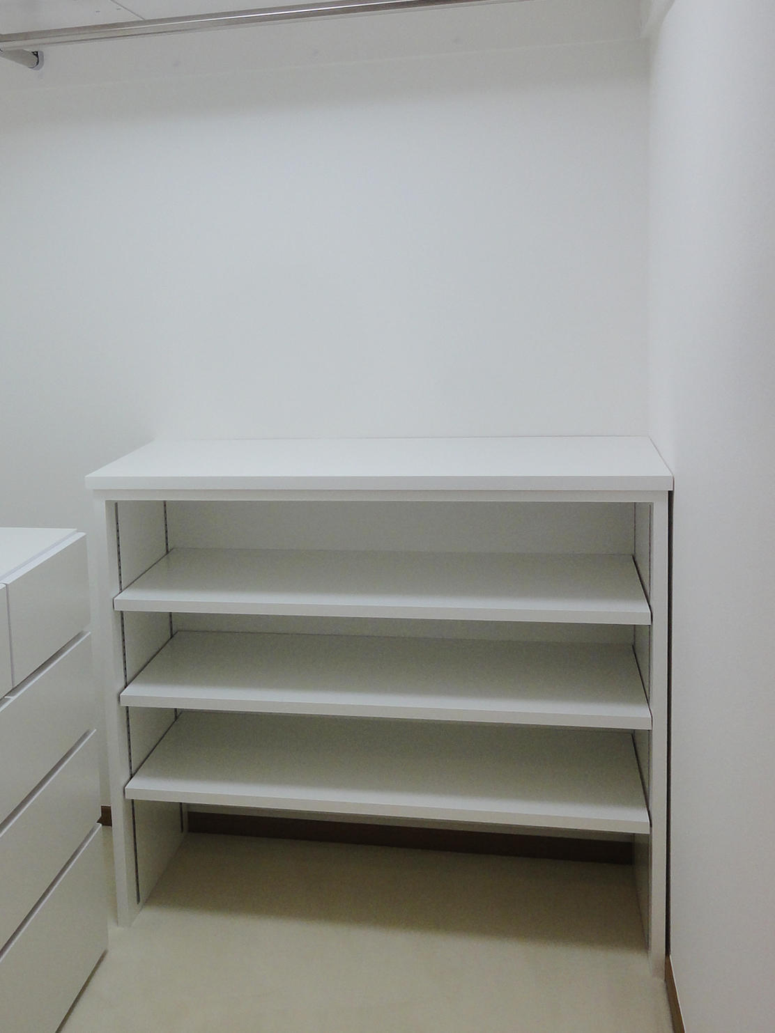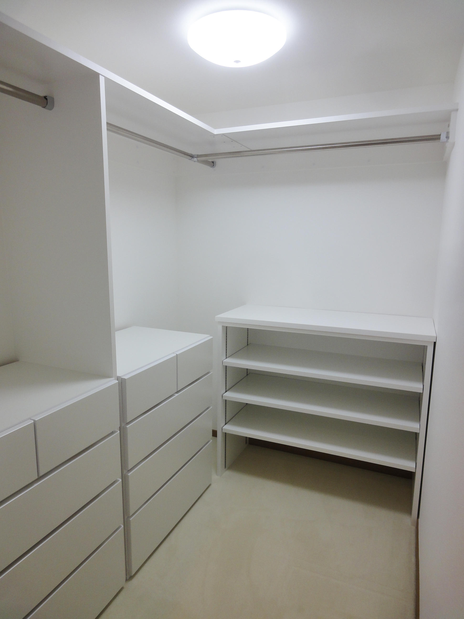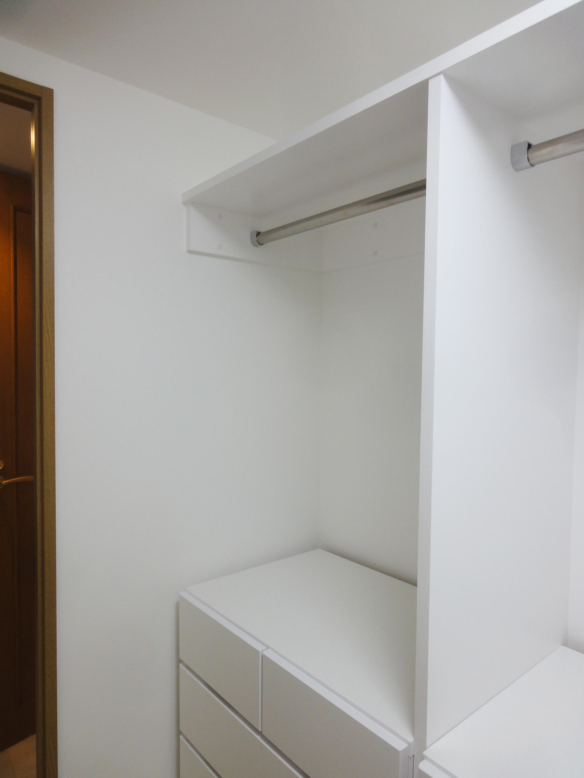 マンションにお住まいのM様。主寝室にある納戸が使いにくく困っていらっしゃいました。今回オーダーで収納を造作し、使いやすいウォークインクローゼットにリフォームしました。