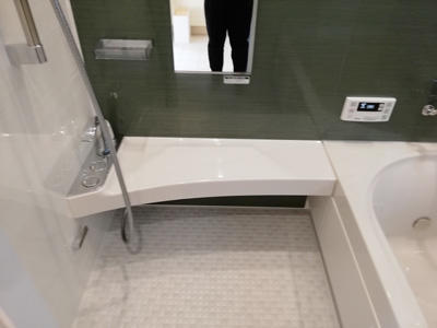浴槽は人造大理石の「グランザ」LIXILで最高級の滑らかさを誇るアクリル鏡面仕上げの浴槽です。浴槽の形はハイバックワイド浴槽肩口に余裕を与え、ひじをあずけるアームレストを備えた広々浴槽。広いフランジは、傍らに置きたいちょっとした小物のスペースになります。