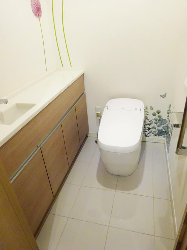 マンションにお住まいのS様。トイレのウォシュレット部分から水漏れがあり、交換を検討されていました。LIXIL サティスリトイレGタイプ GR6グレードにお取替え。サティスGタイプは凹凸がなくつるっとしているので、汚れもサッとひと拭きで落とせるお掃除ラクラク形状です。