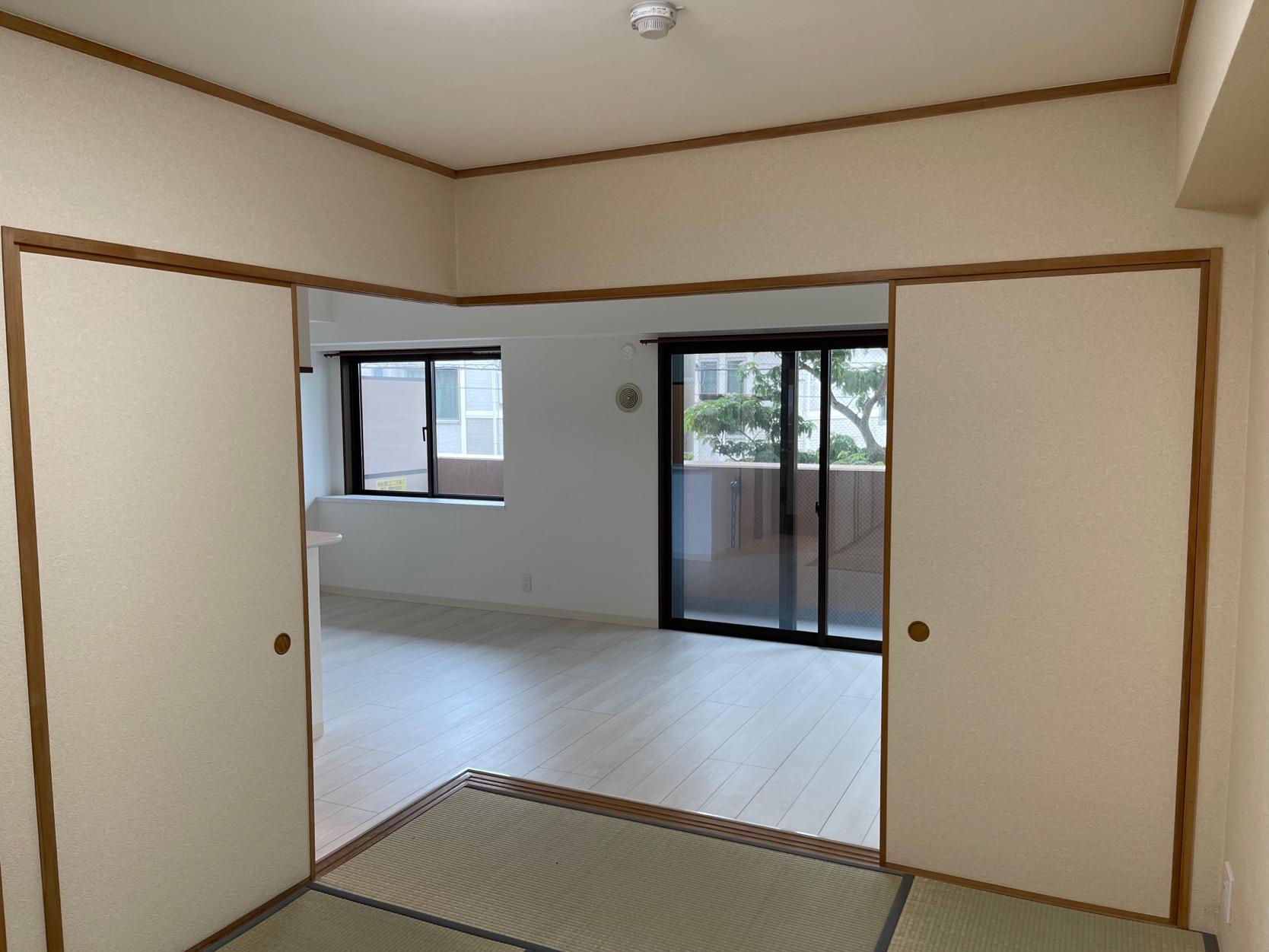 今回は、物件探しからお手伝いさせていただきました。 環境・通勤の利便性・建物状況・広さなど色々な角度から精査してカスタマイズしやすい物件をご紹介して、ご入居前にリノベーションをしました。 コンセプトは「仲間と一緒に楽しめる空間に」 旧和室部分の壁を撤去してリビングダイニングと一体感にさせることで、広がりのある白をベースとしたカントリー調の空間に仕上がりました。