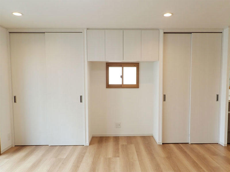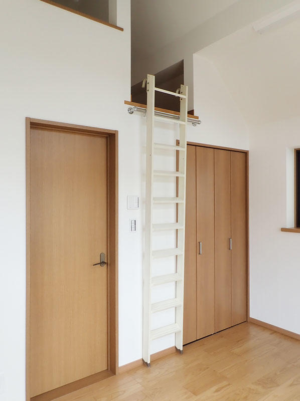 以前のクローゼットは、間口が広く大容量収納可能でしたが、屋根裏収納へのはしごを使う度にかけなければならず、とても不便でした。今回は屋根裏収納を活用できるようにクローゼットを小さくし、はしごをかけたままクローゼットが使用できるようにしました。