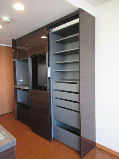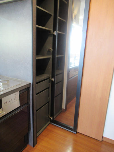 フード横のスペースにもW450の収納キャビネットを設置しました。