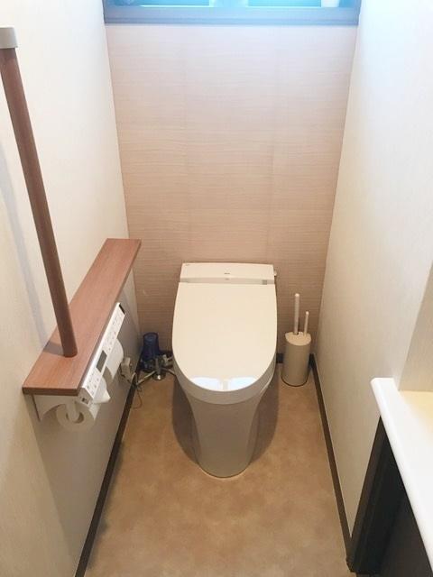 施主様は初めてのタンクレストイレをご検討でした。特にこだわったのはデッドスペースの利用です。 奥様はここに手洗い場を作って欲しいと強くご希望されていました。 (他社で出来ないと断られたことあり) 最初は諦め半分でのご依頼でしたが、熟練職人の腕によって手作りのご希望に叶う空間作りが出来ました。