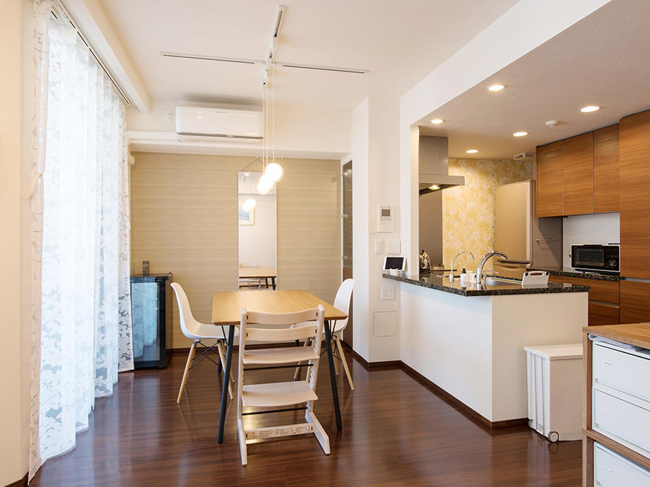 O様邸では、玄関回りの収納スペース以外の間取りはほとんど変えていません。それでも照明や壁紙の変更と造作家具を追加することで十分使いやすく、居心地の良い空間を作ることができました。細かな内装材の決め込みでは、O様にご協力いただいた部分・ご負担をおかけした部分も多かったのですが、最終的にはご趣味に合う空間に仕上げることができ、嬉しく思います。
