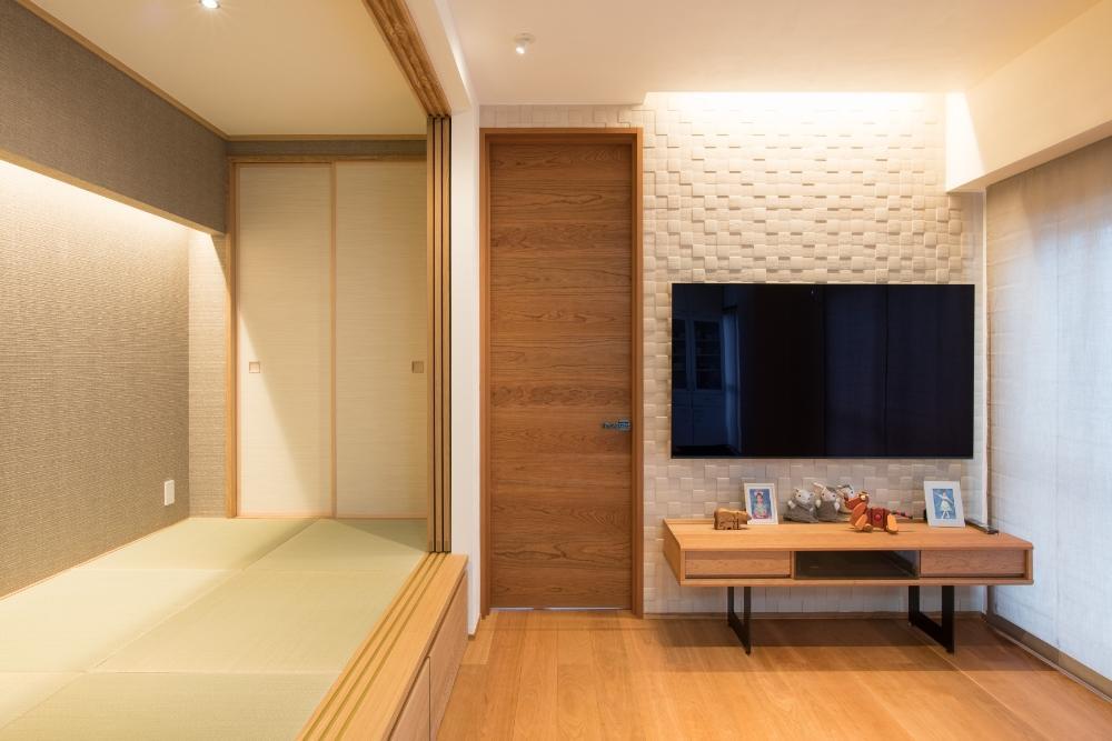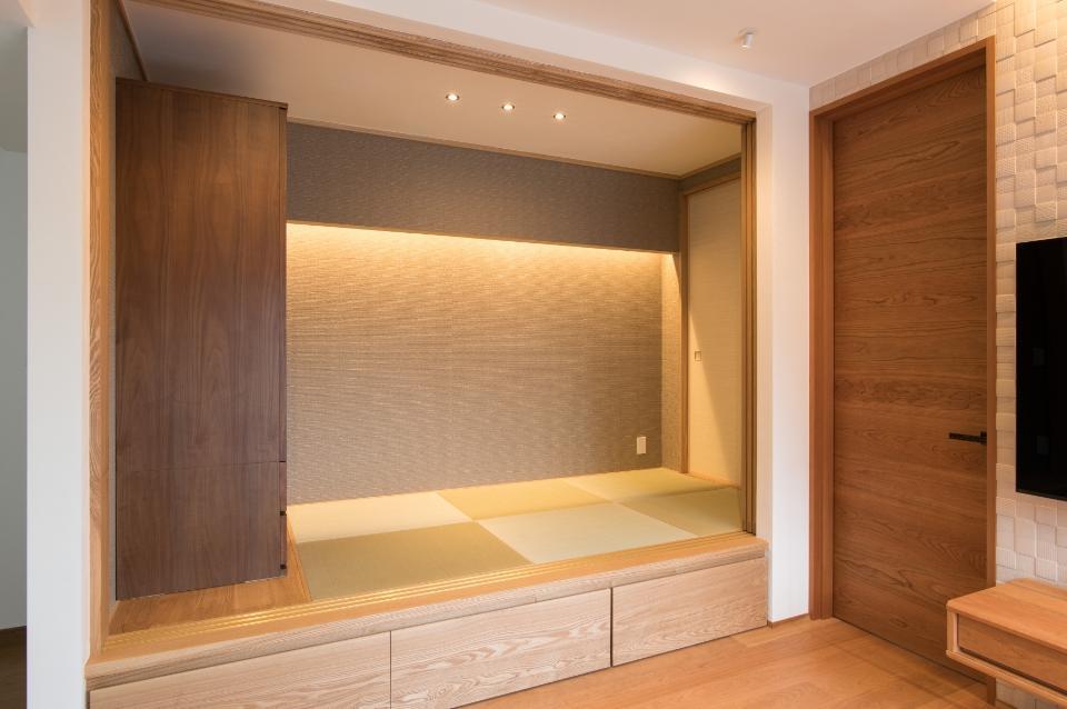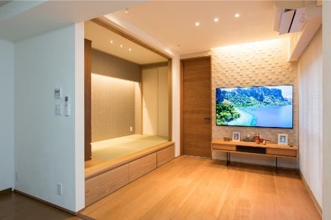 クローゼットがあった場所に小上がりの畳スペースを設置。立体感が生まれメリハリのある空間になりました。リビングの一部として活用しながら、ゆるやかに空間を仕切ることも可能。
