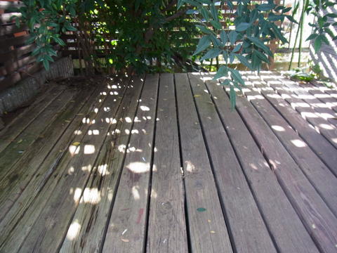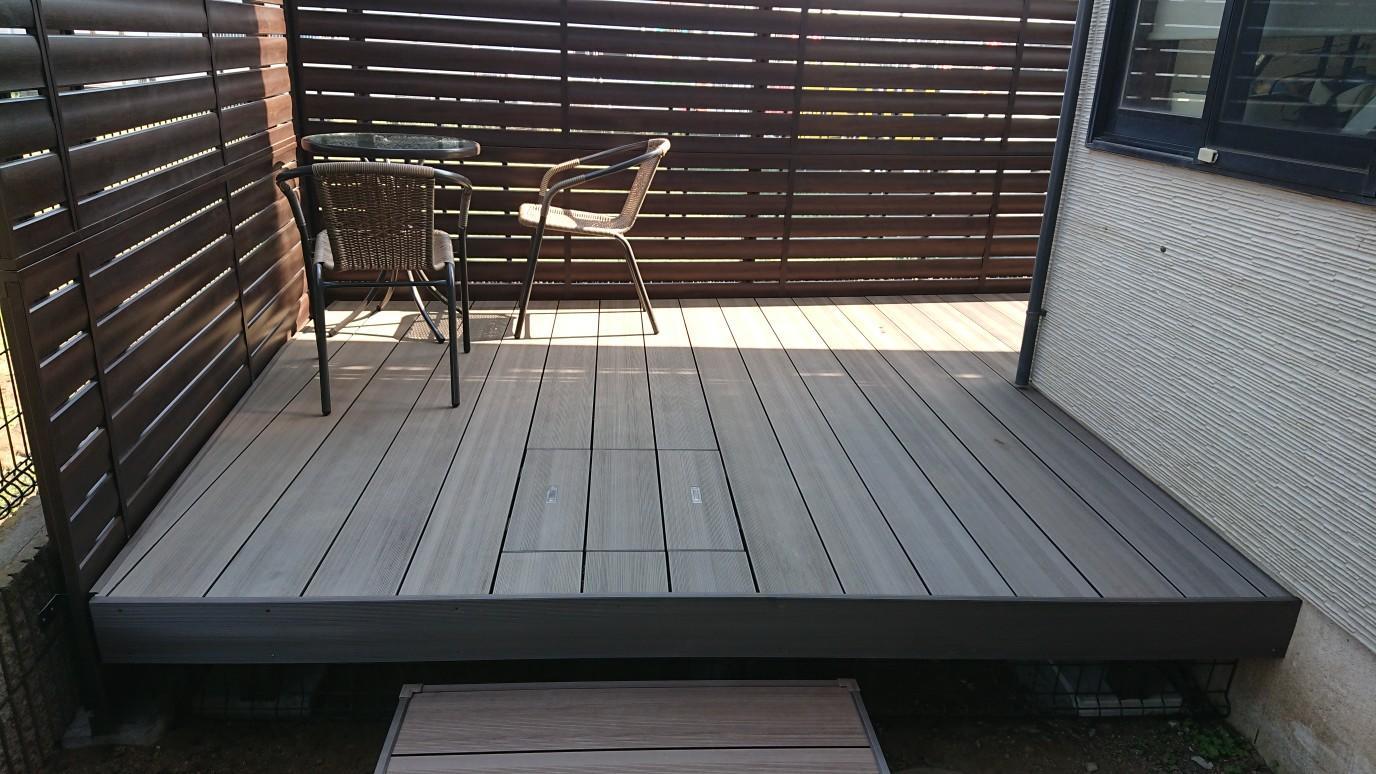 経年で傷みがあり、メンテナンスのし易いデッキに