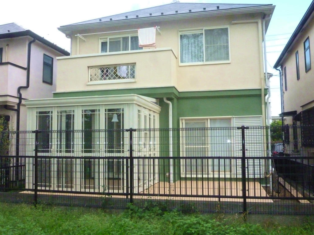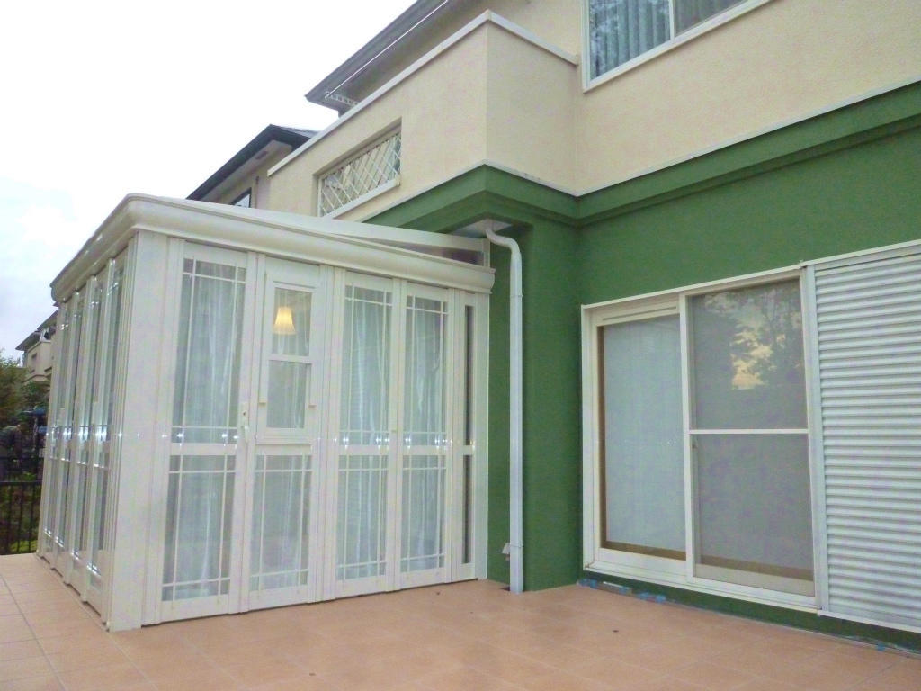 公園に面した広いお庭がご家族の皆様に活用されていませんでした。樹木を撤去し、庭いっぱいにタイルテラスを作り、ガーデンルームを設置しました。照明器具とオーダーカーテン・内部日除けを取り付けるとまさにリビングルームです。皆様でゆったりと楽しいひと時を過ごしていただければと思います。