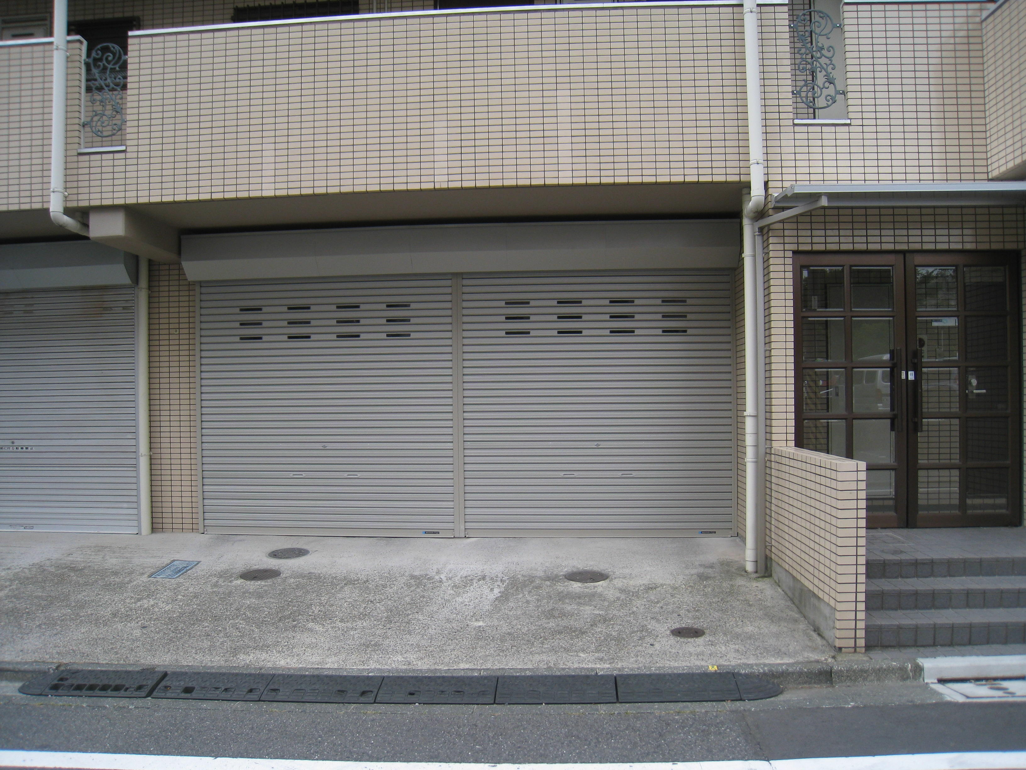 オープンだったガレージに明かり窓付きのシャッターを取り付けました。建物に馴染むよう既存のシャッターに合わせてミストシルバー色を選定しました。防犯性も高まります。