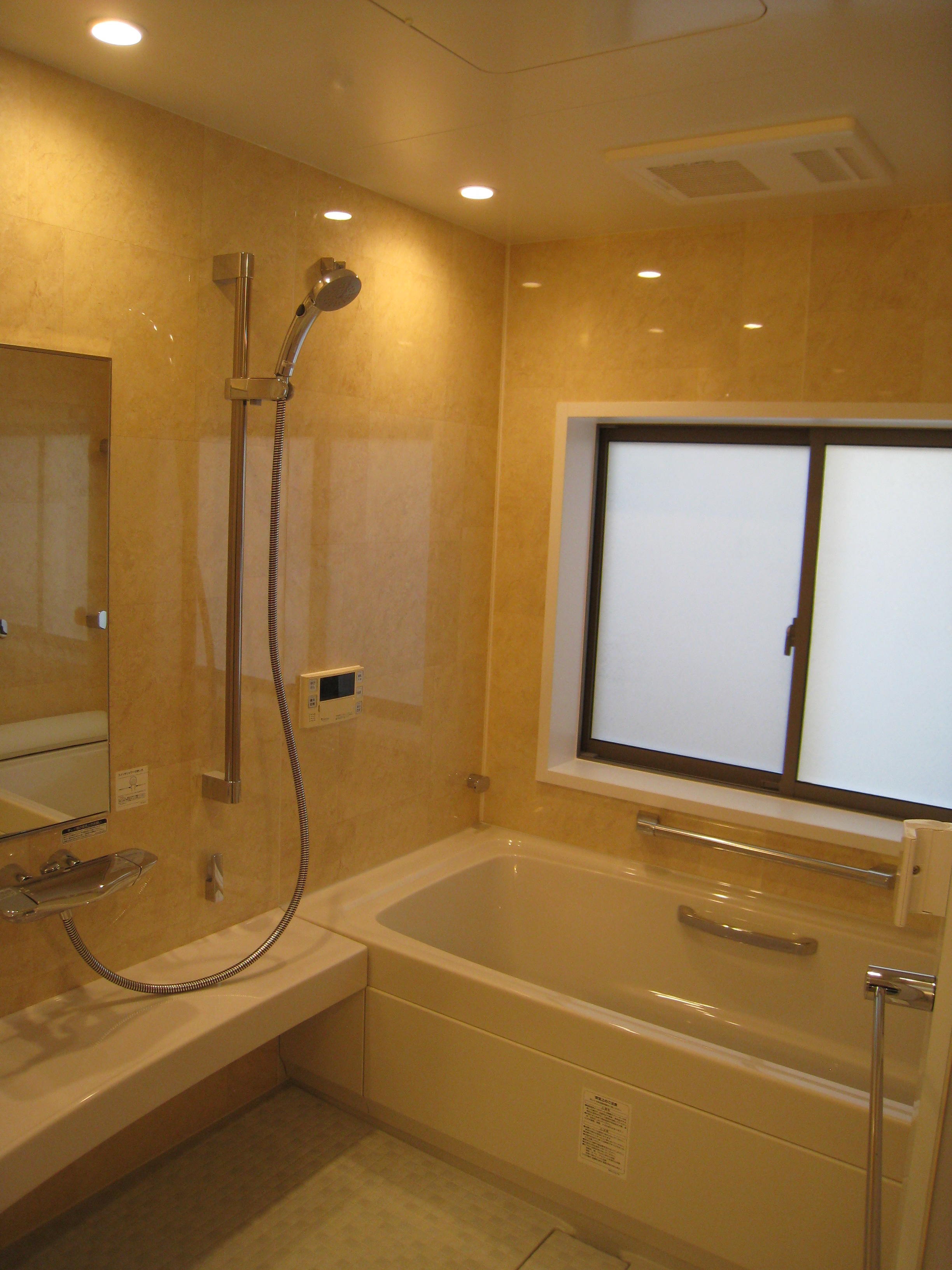 築20年の在来の浴室からジェットバスが故障したのをきっかけにユニットバスにリフォームされました。外窓の交換工事がありましたので工期はかかりましたが、たいへんご満足いただきました。出入り口の段差は解消され、保温材で浴室が寒くなくなりました。ヘッドレスト付きのマルチボード浴槽でゆったりとお風呂に入っていただいています。